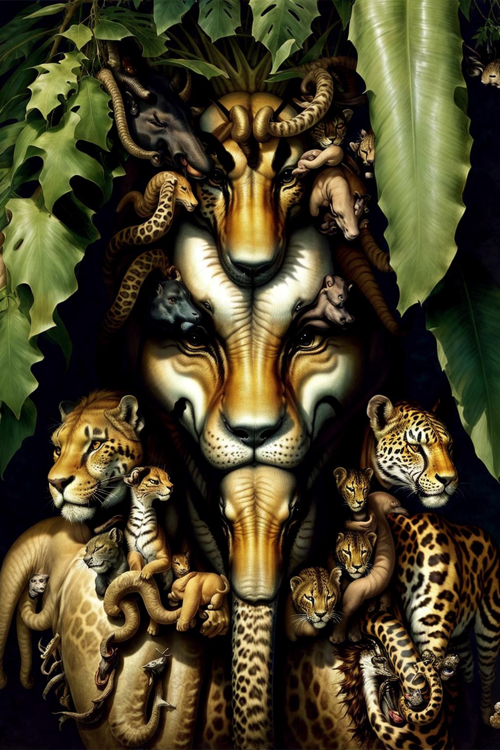 朱塞佩·阿尔钦博托是意大利文艺复兴时期著名肖像画家,他的作品包括挂毯设计和彩色玻璃装饰设计,他的作品特点是用水果、蔬菜、花、书、鱼等各种物体来堆砌成人物的肖像。训练检查点:SD1.5。