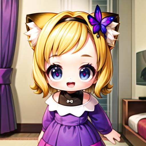 clothes: purple dress, hairband, butterfly hair ornament