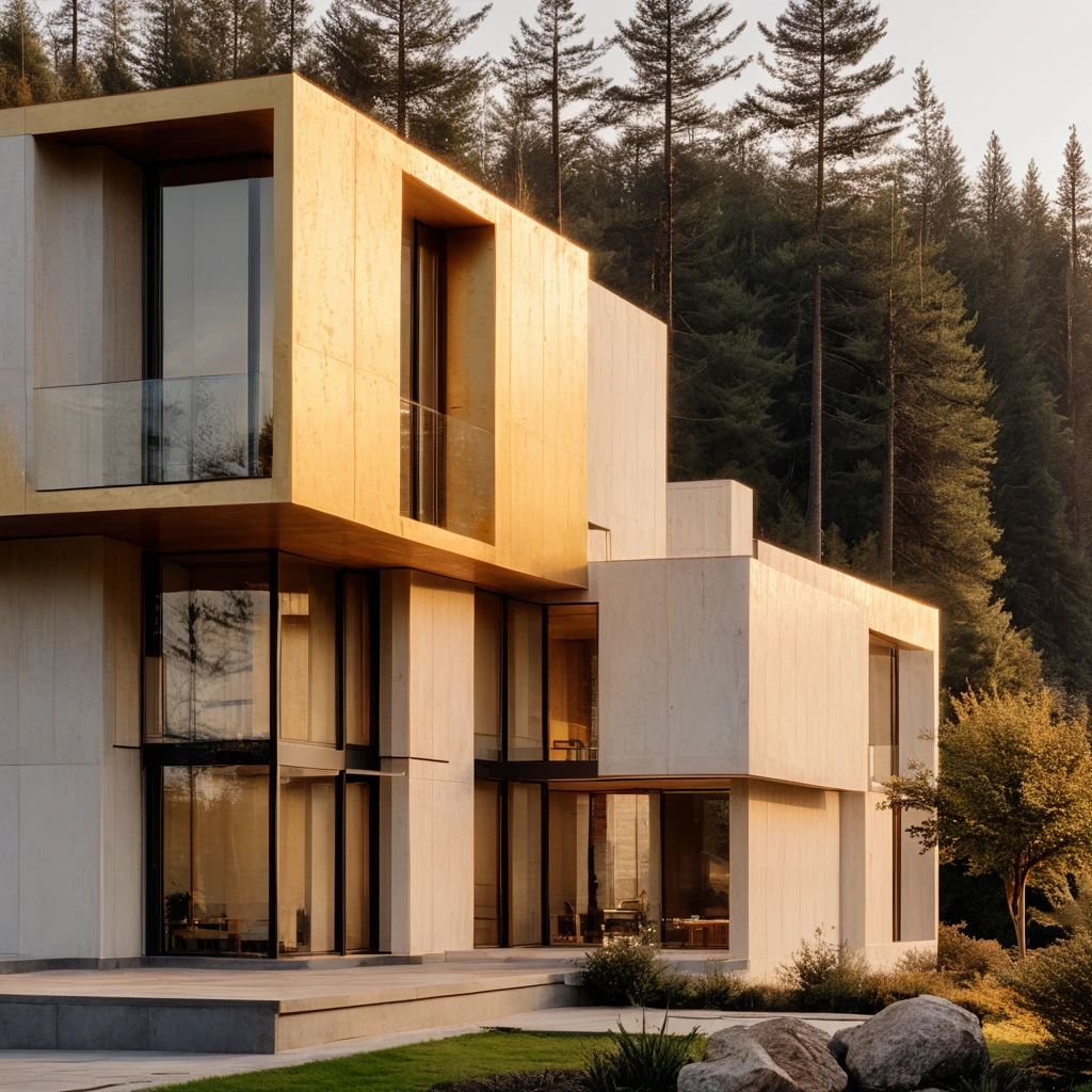 "modernvilla" invokes an aesthetic of contemporary architecture with concrete, glass and wood.