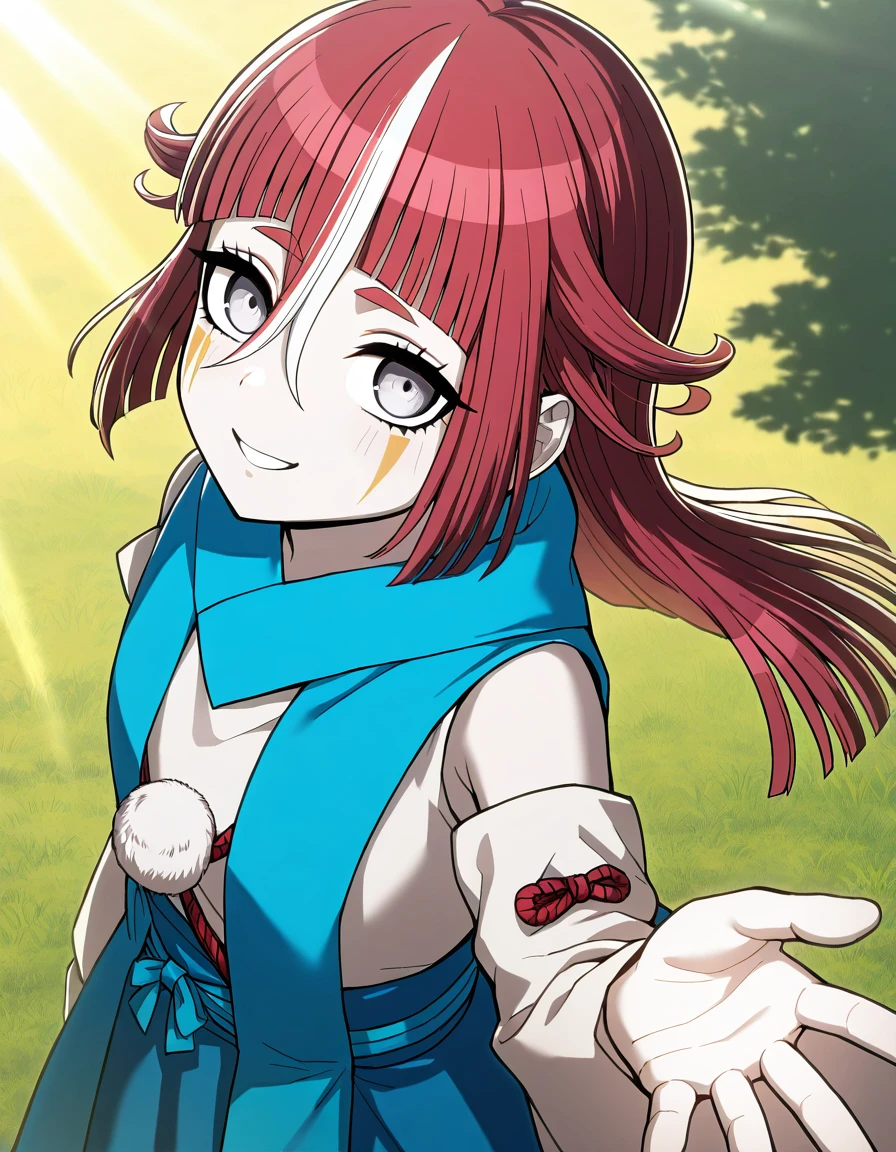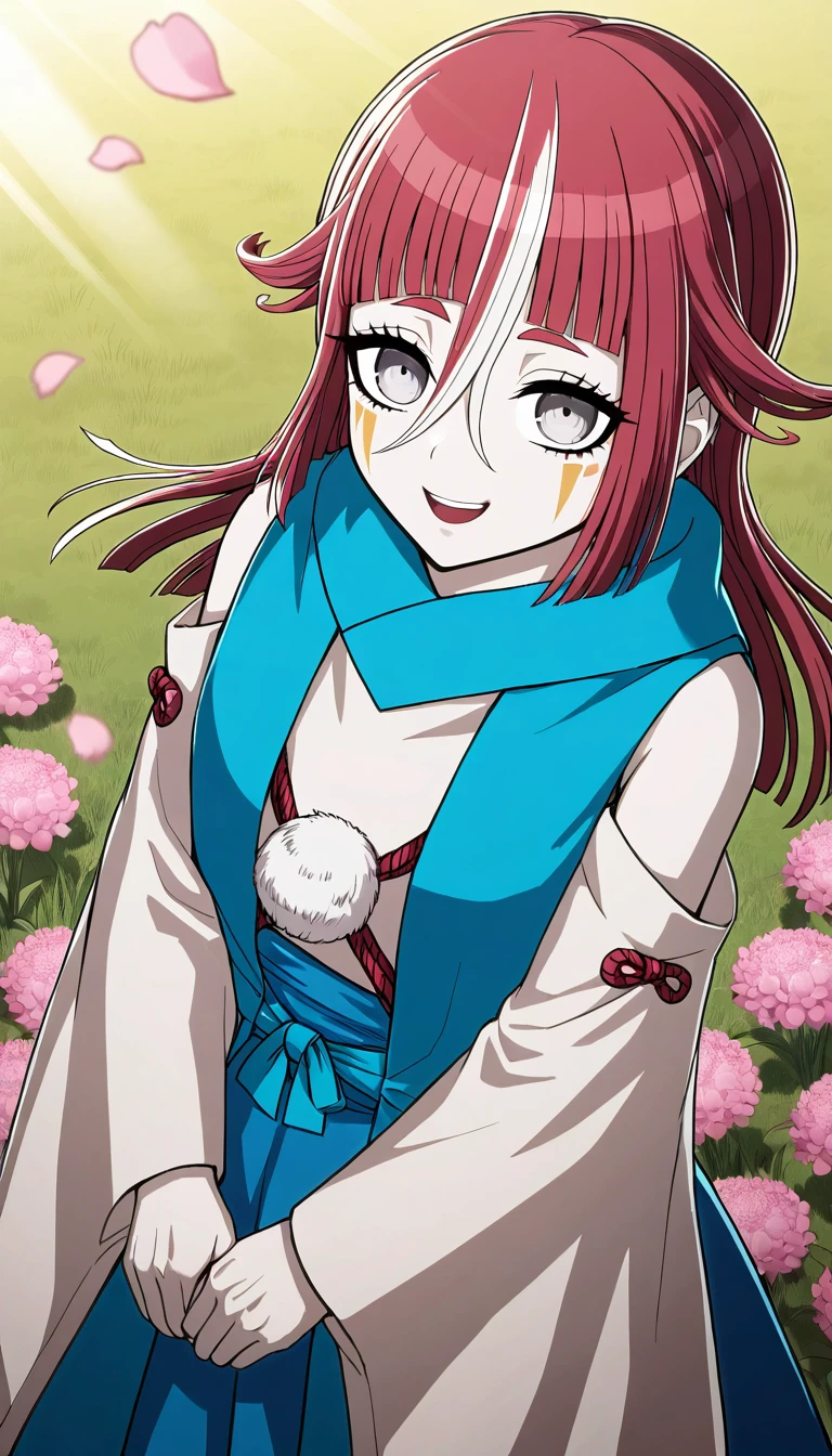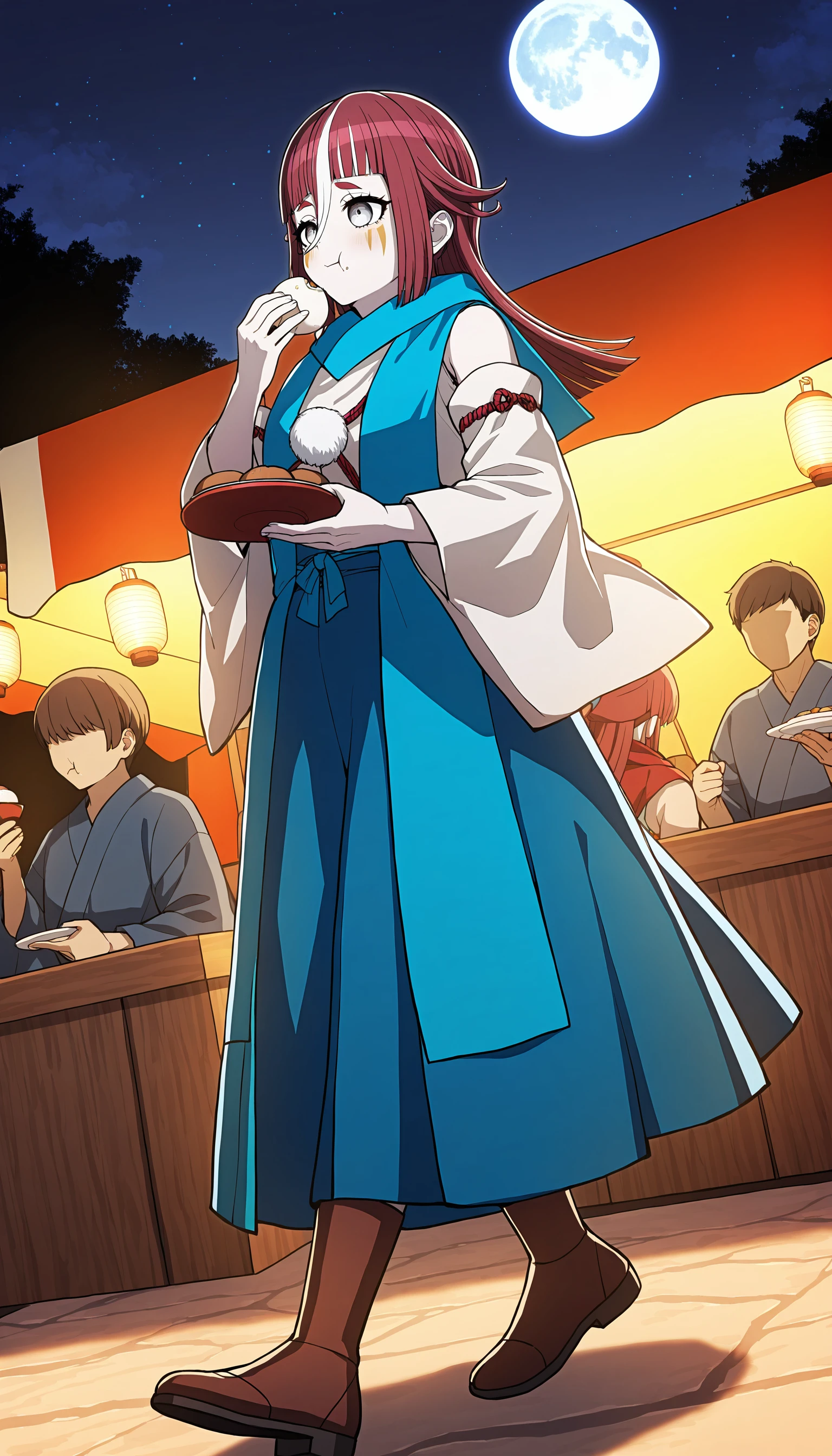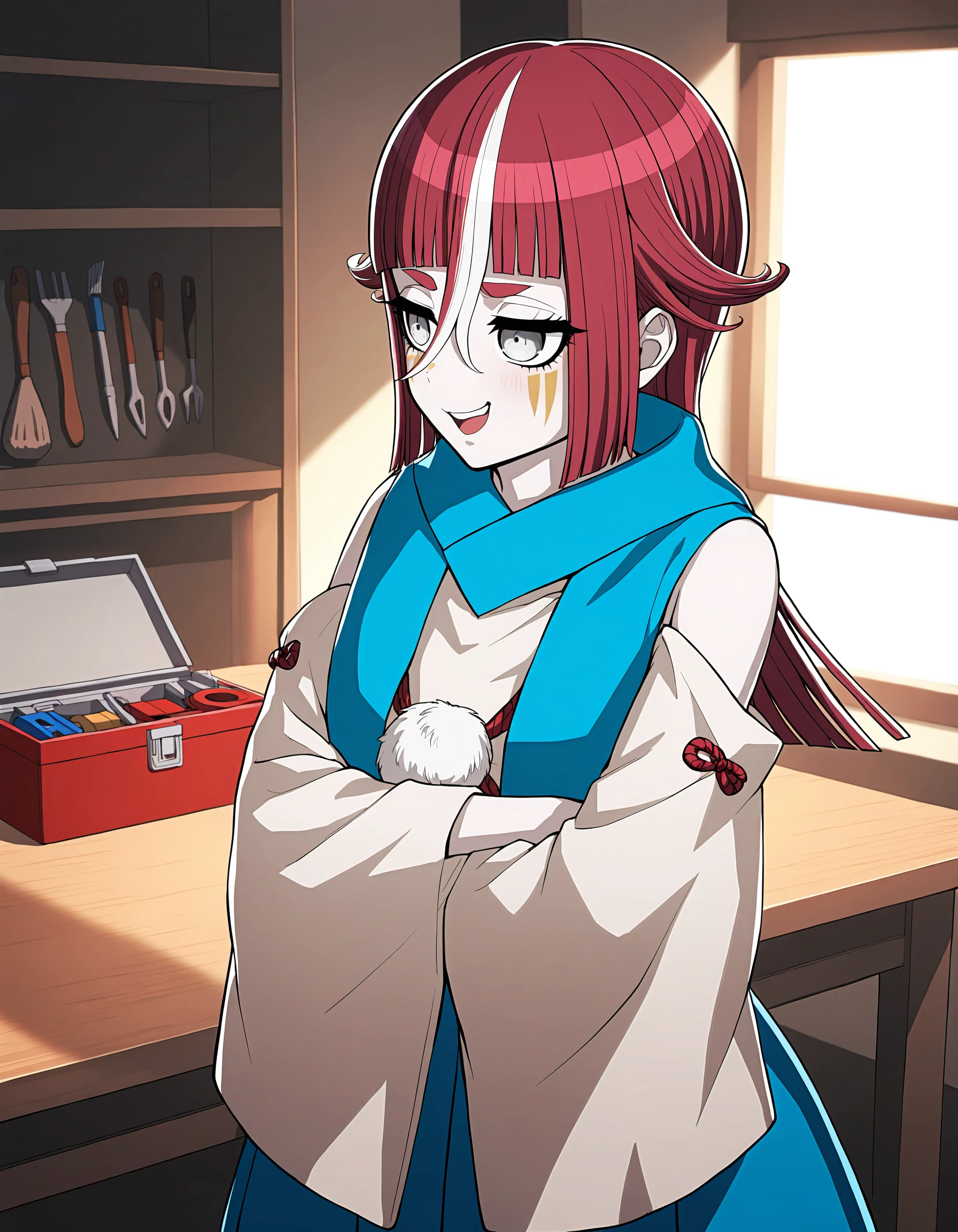 KamyuhnRegularOutfit, blue scarf, kosode,detached sleeves,wide sleeves, pom pom (clothes), blue hakama skirt, brown bootsーーーーーーーーーーーーーーーーーーーーーーーーーーーーーーーーーーーーーーーーー