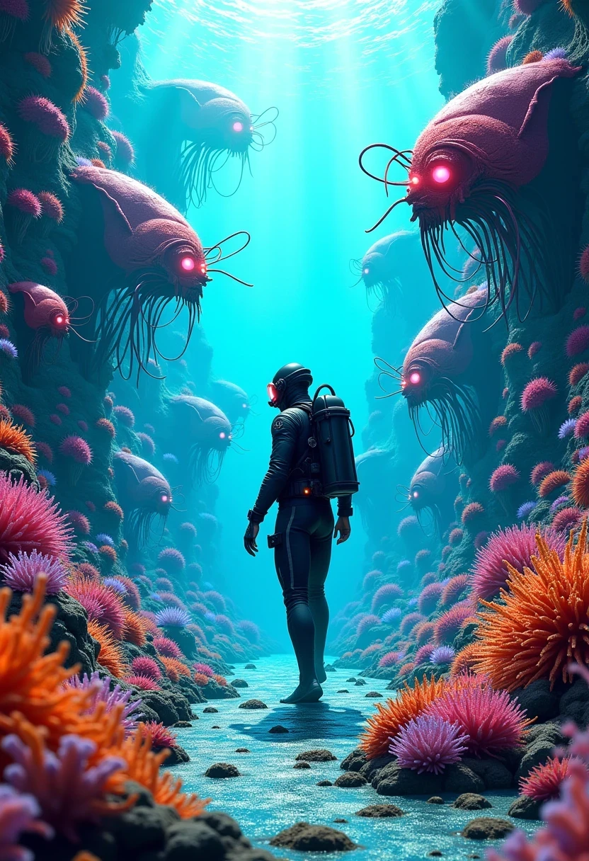 We invite you to dive into a world where science fiction meets oceanic mystery — a place where Earth’s technology collides with alien ecosystems.