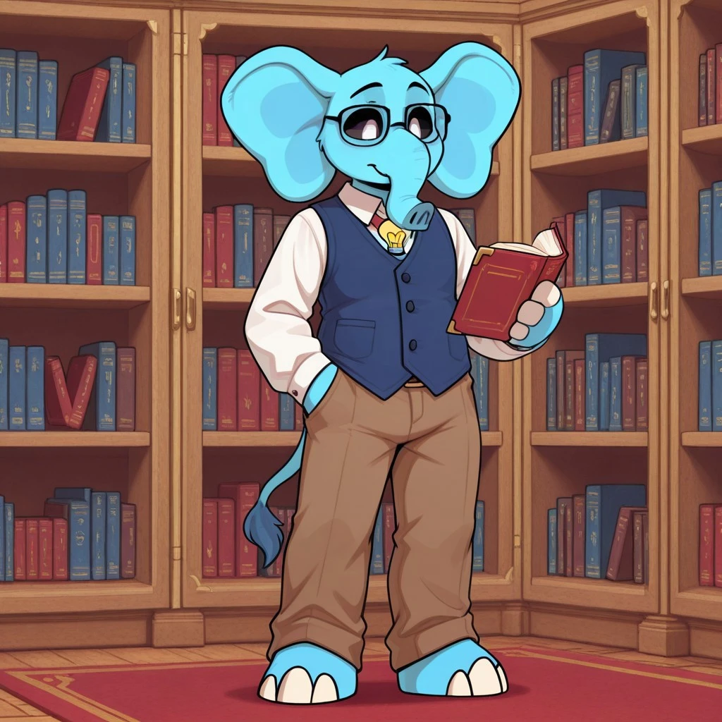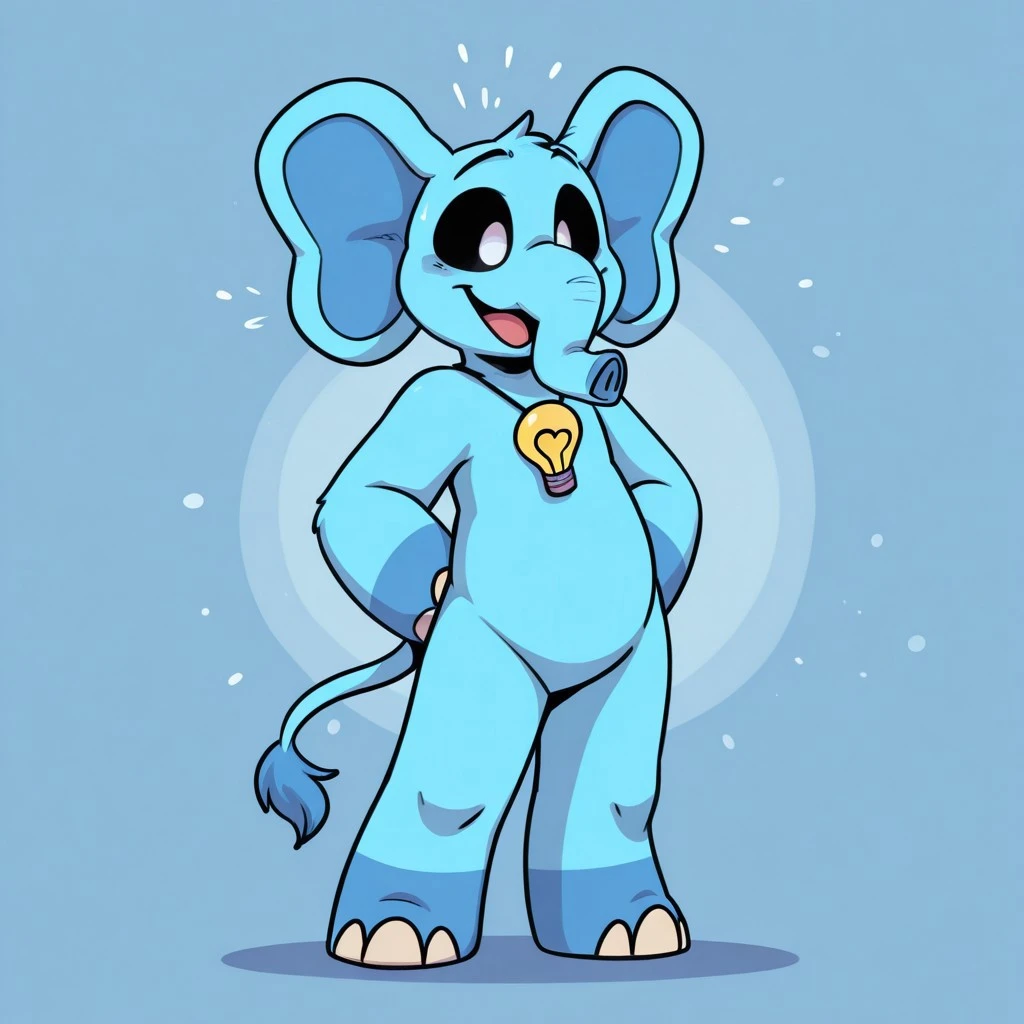 bubbabubbaphant, elephant, anthro, furry, blue body, black sclera, white eyes, light bulb necklace,