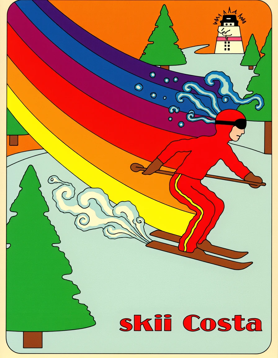 a game cover of 'insert your prompt' with a colorful trail behind in the style of vintage-activision