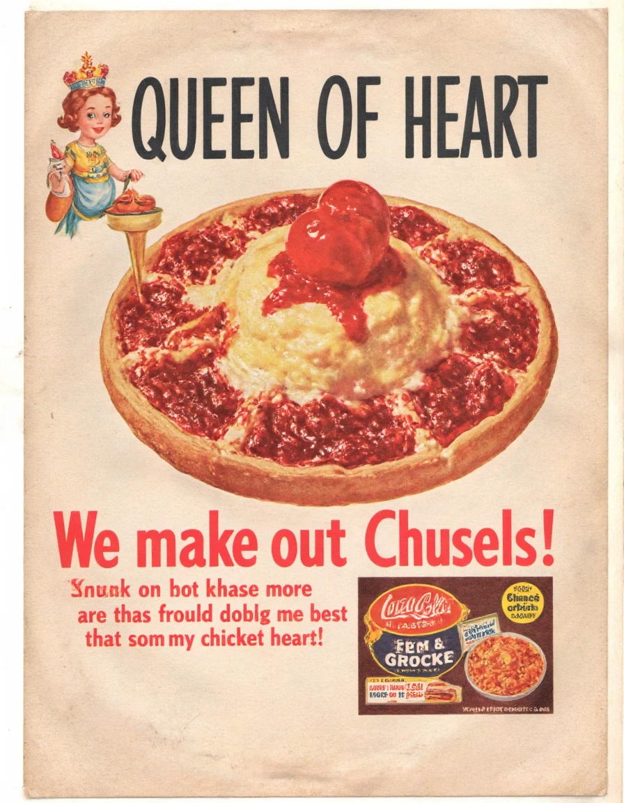 • a vintage printed photo of 'your prompt' in the style of 60s-food-ads