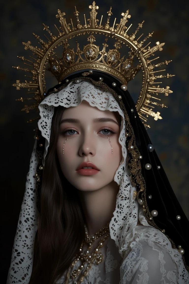 《玛丽亚》LORA 模型以宗教美学为核心设计,结合奢华与神秘的艺术表现,为创作者提供一种极具仪式感与戏剧性的视觉创作工具。模型通过精致的细节雕琢、浓郁的光影对比,以及华丽的服饰与宗教元素,呈现出圣洁与禁忌并存的奇妙张力。