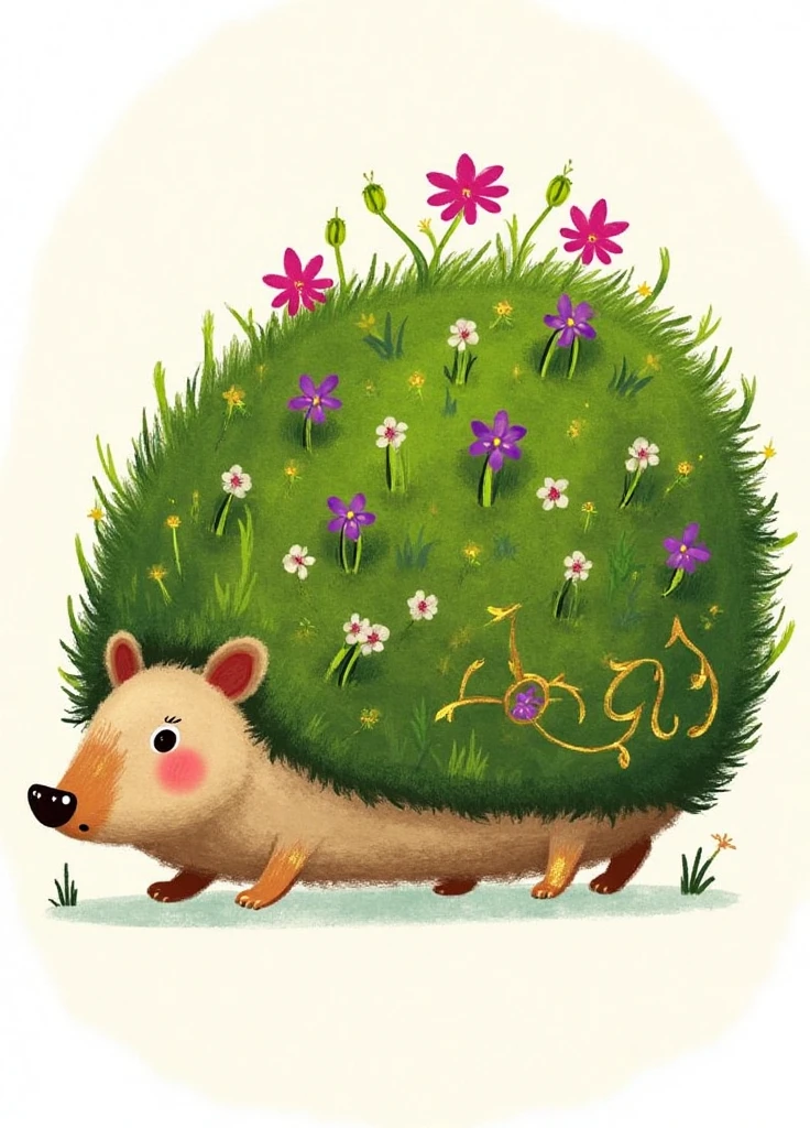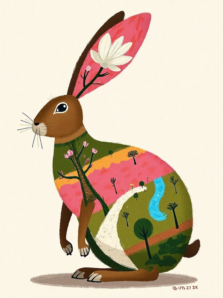 Animal shapes integrated with patterns, highlighting a rabbit and a hedgehog. Incorporate delicate flower patterns and whimsical elements for a charming look.