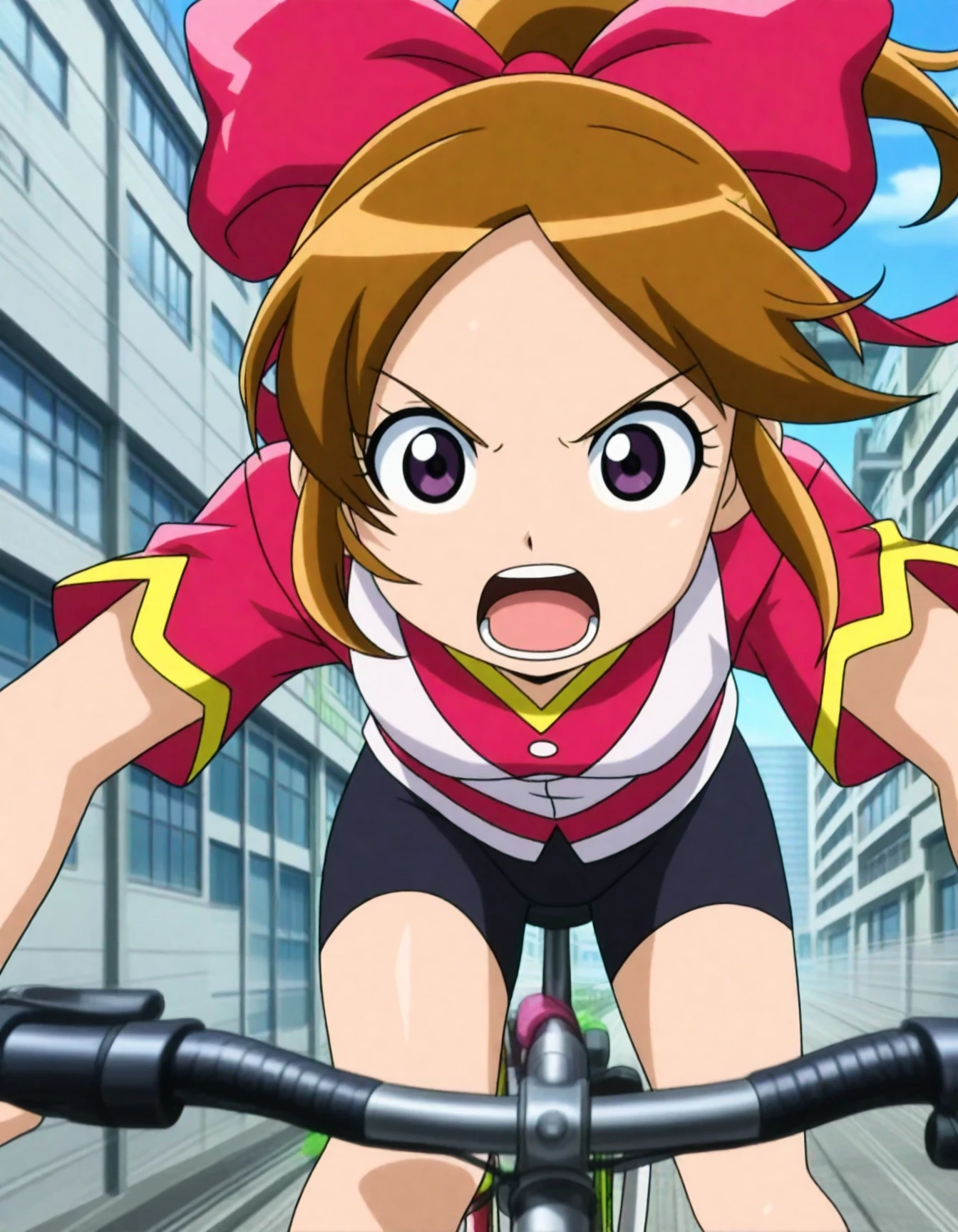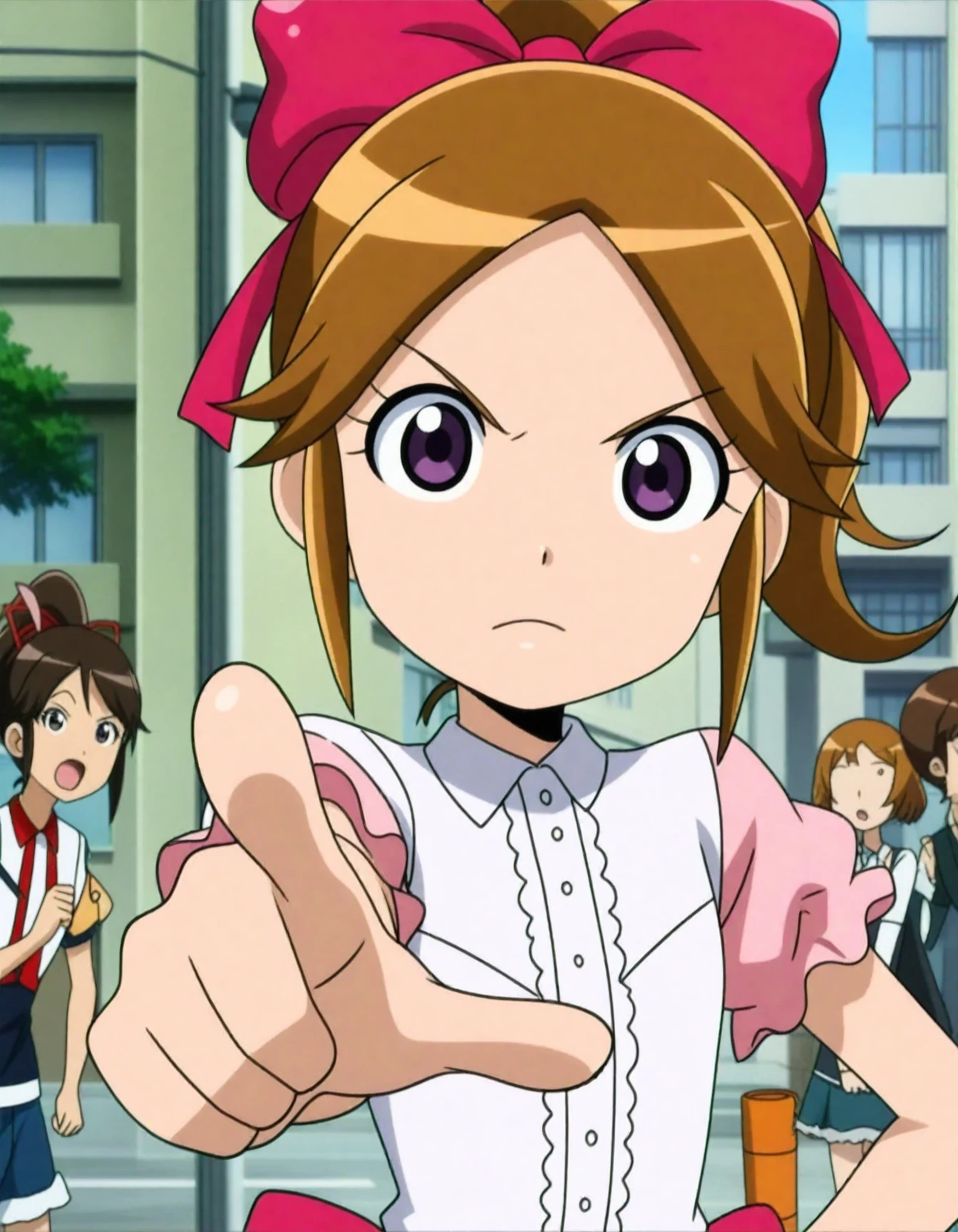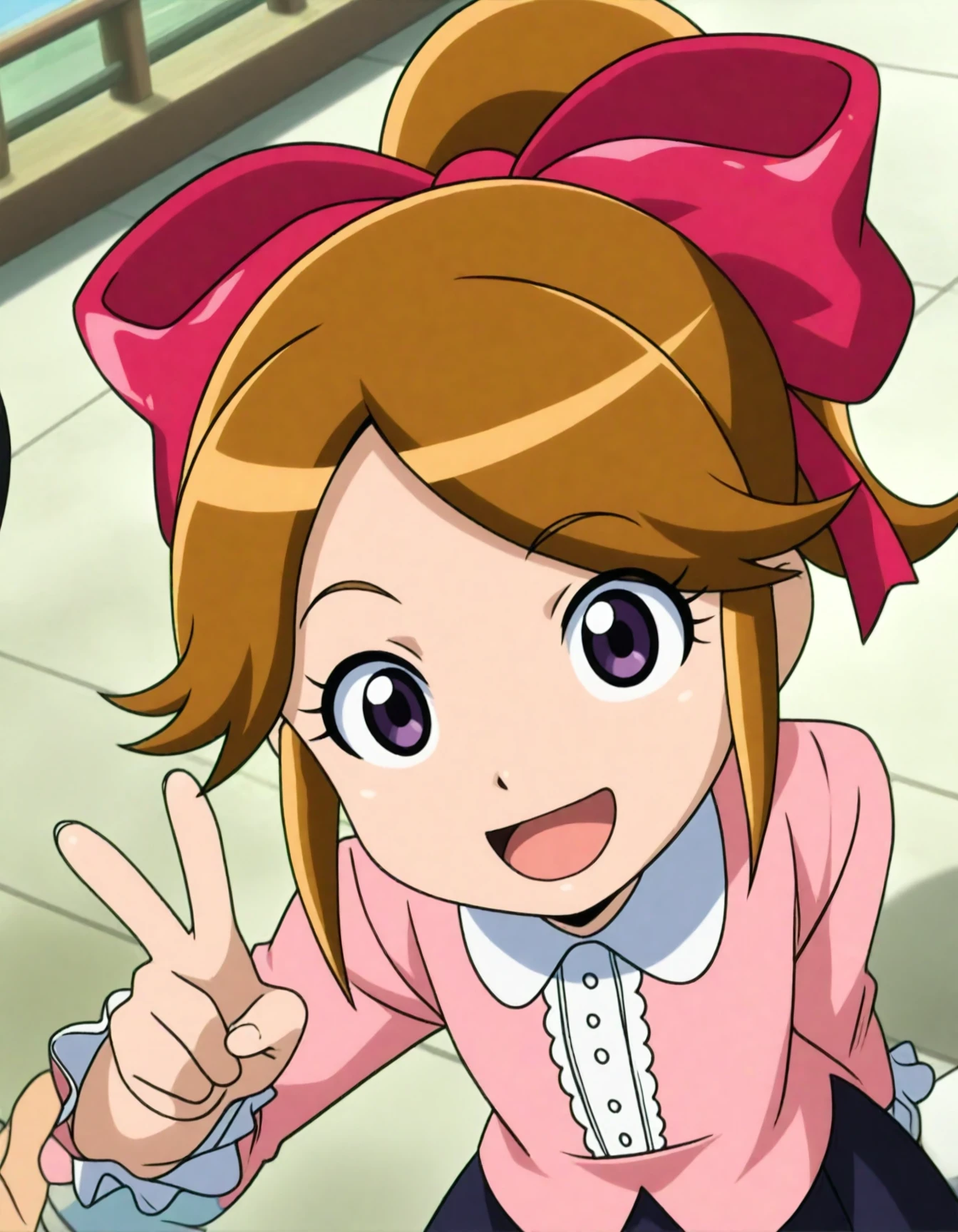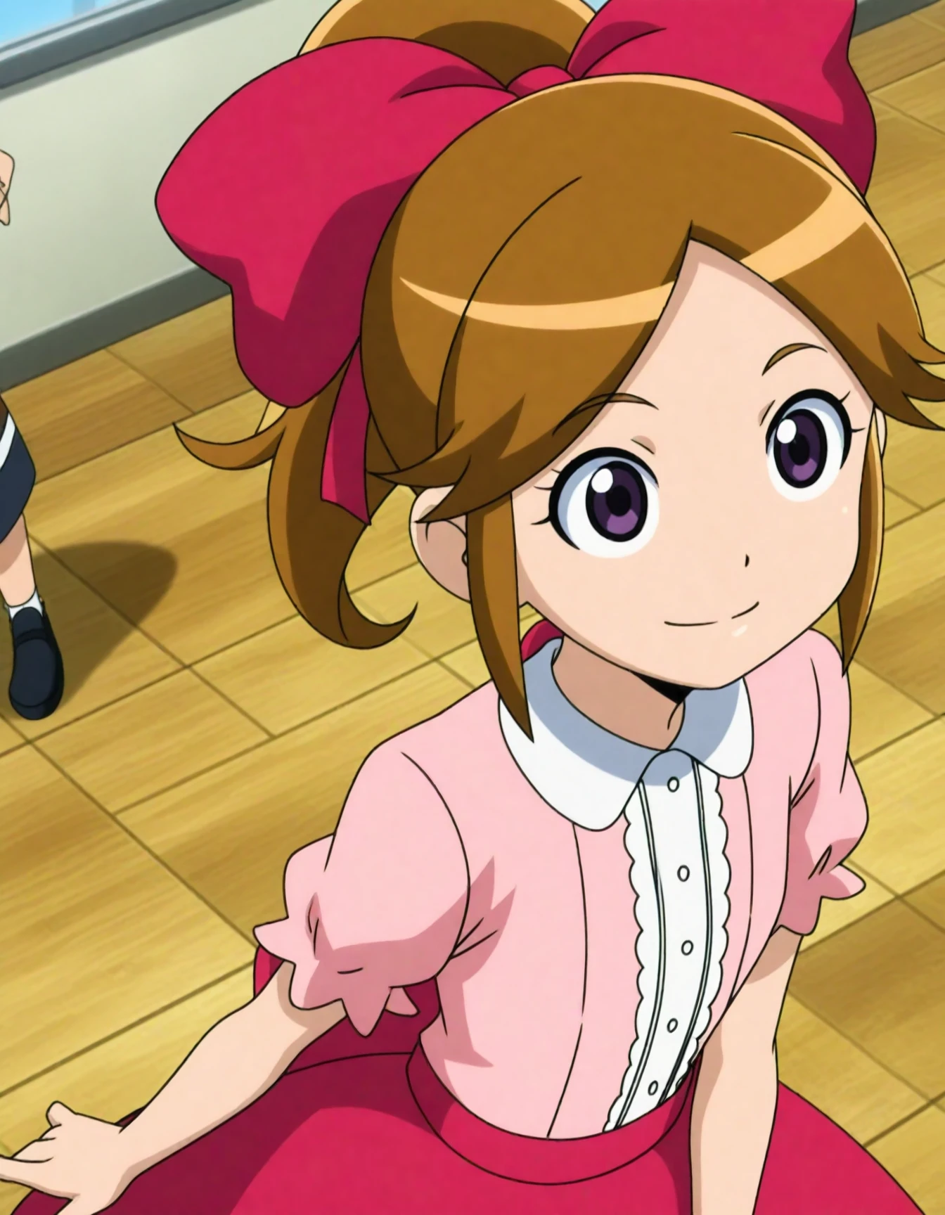 short_hair,brown_hair,purple_eyes,ponytail,hair_bow