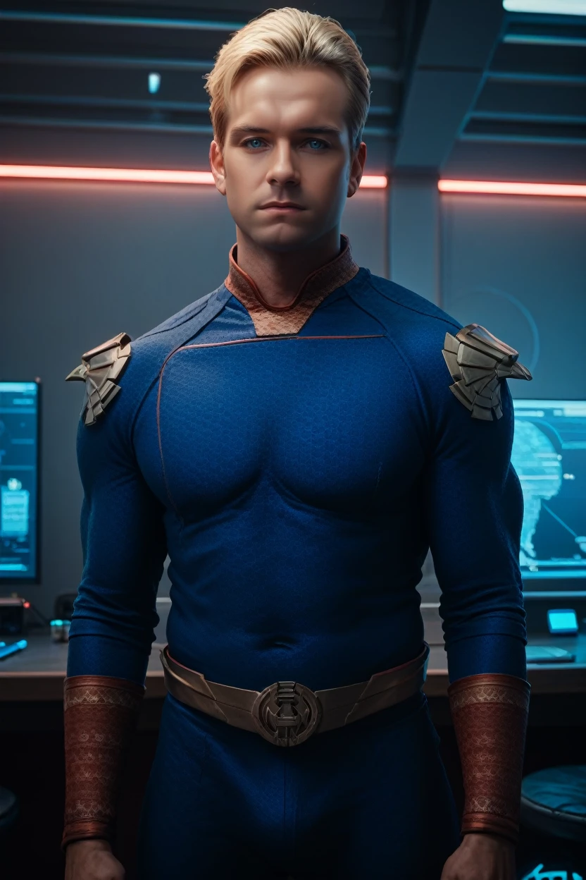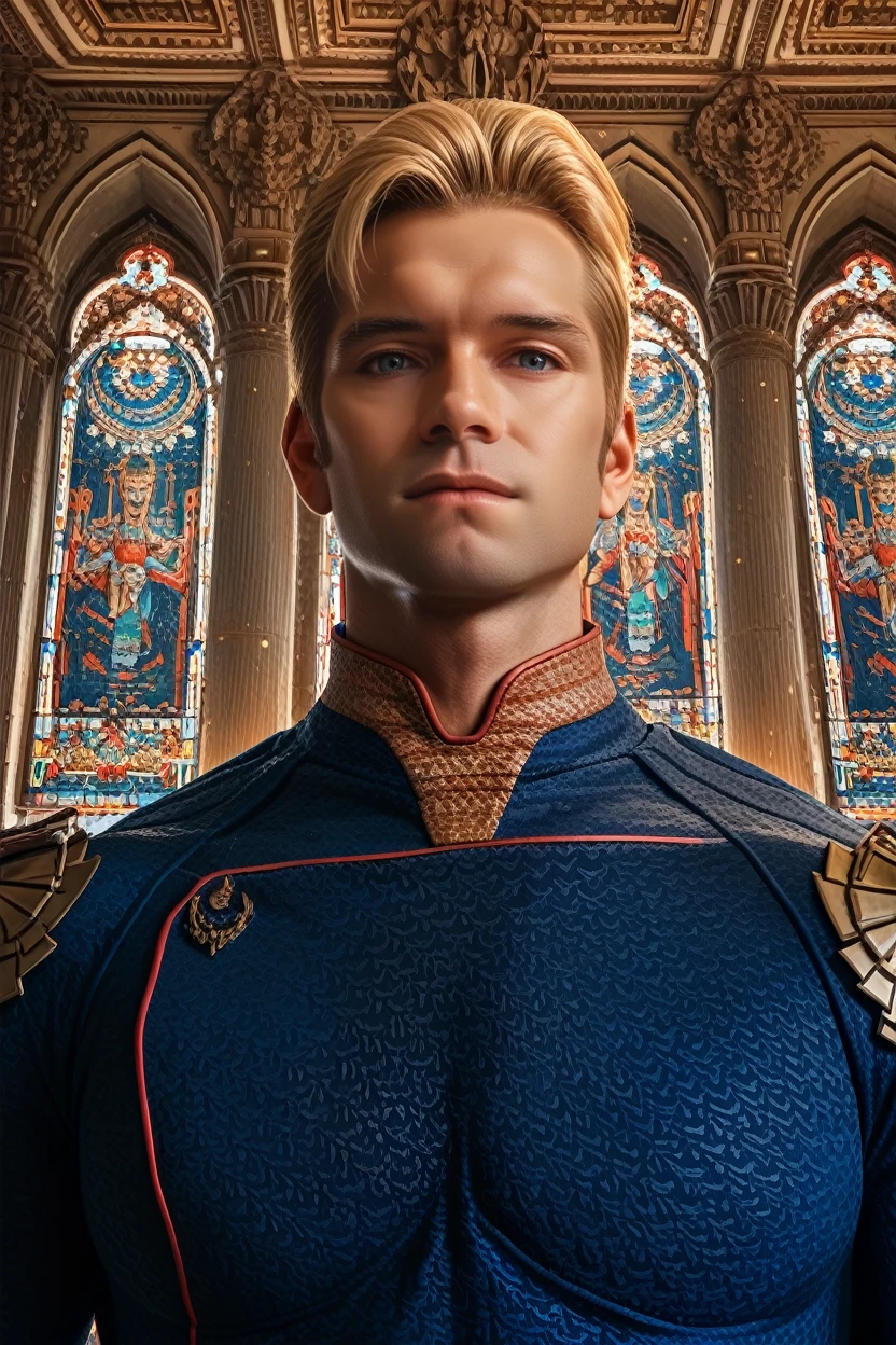 TBHomelander, 1boy, blonde hair, short hair, blue eyes