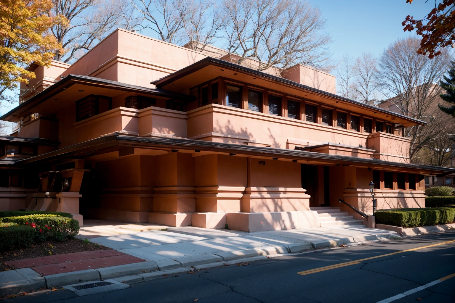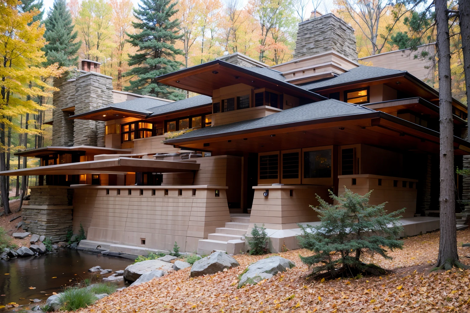 Frank Lloyd Wright was an American architect, designer, writer, and educator. He designed more than 1,000 structures over a creative period of 70 years. This Lora is trained on 52 of his most popular designs. While the base model knows Frank Lloyd Wright styles, it tends to make them more modern - this Lora should help slant them to be more period-authentic and intricate.