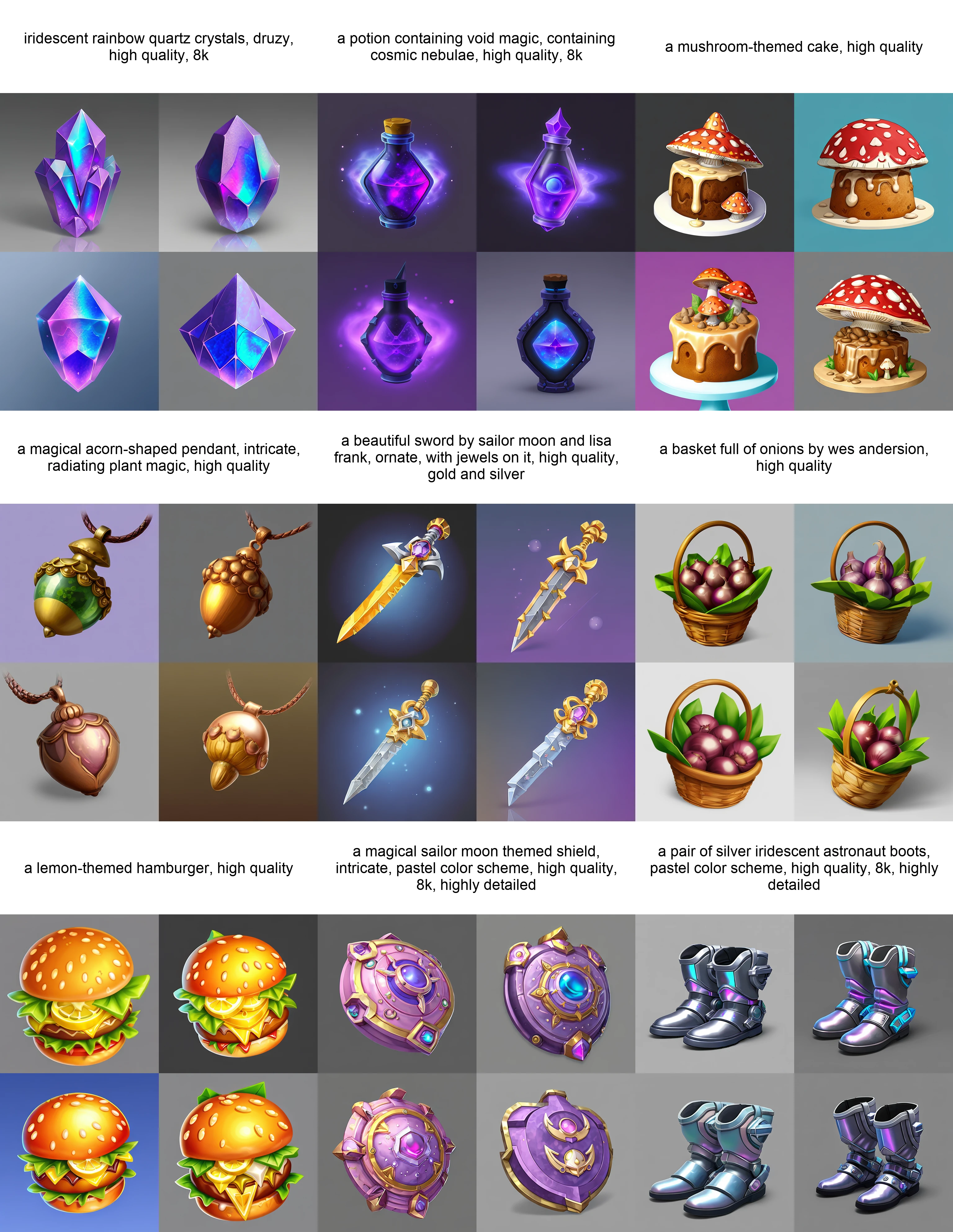 generates icons inspired by fantasy games with mostly plain backgrounds, as seen here