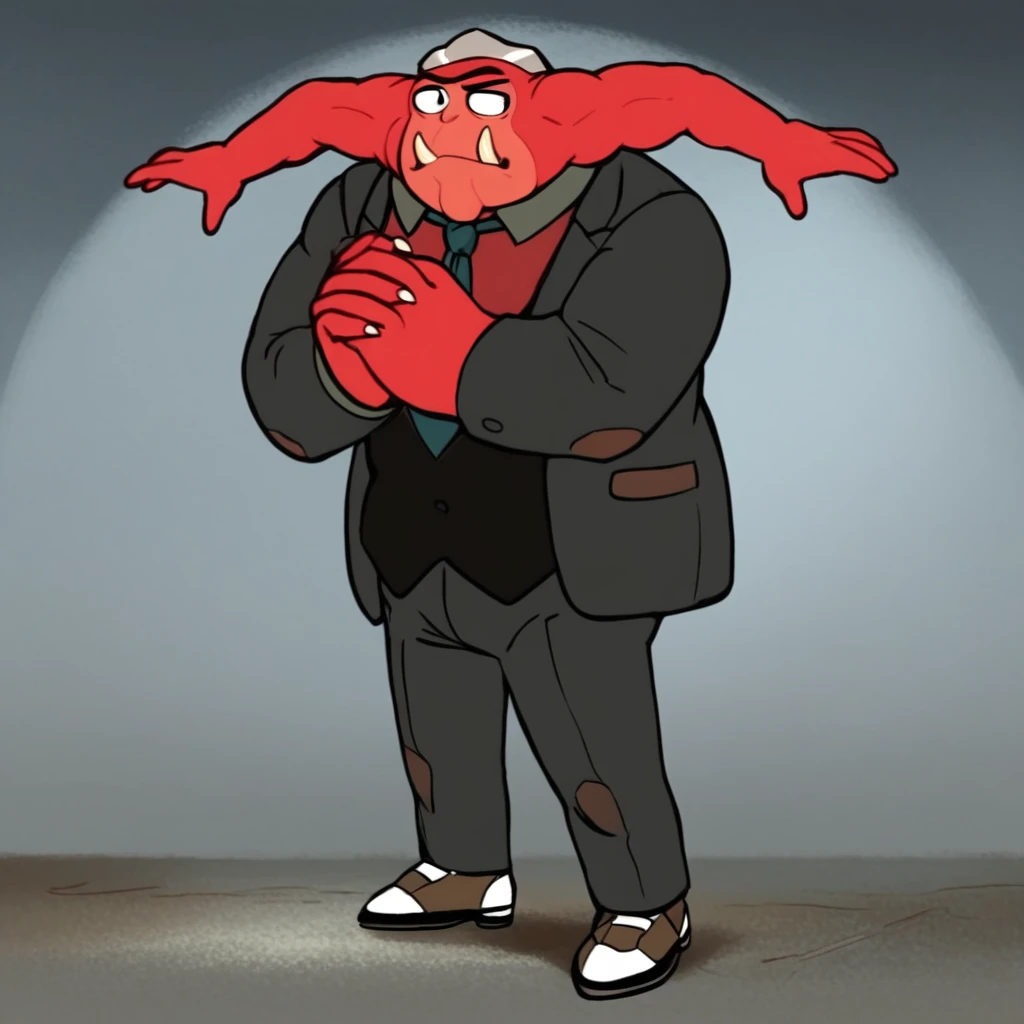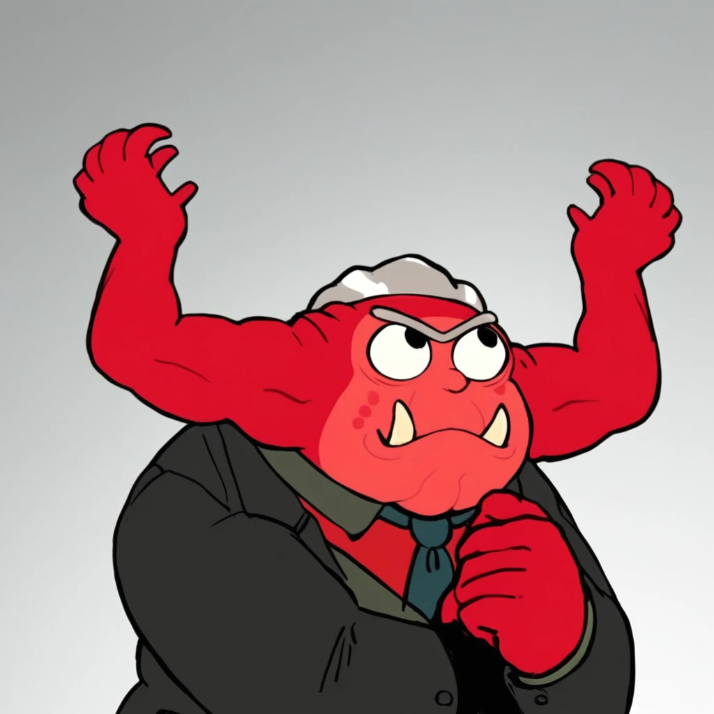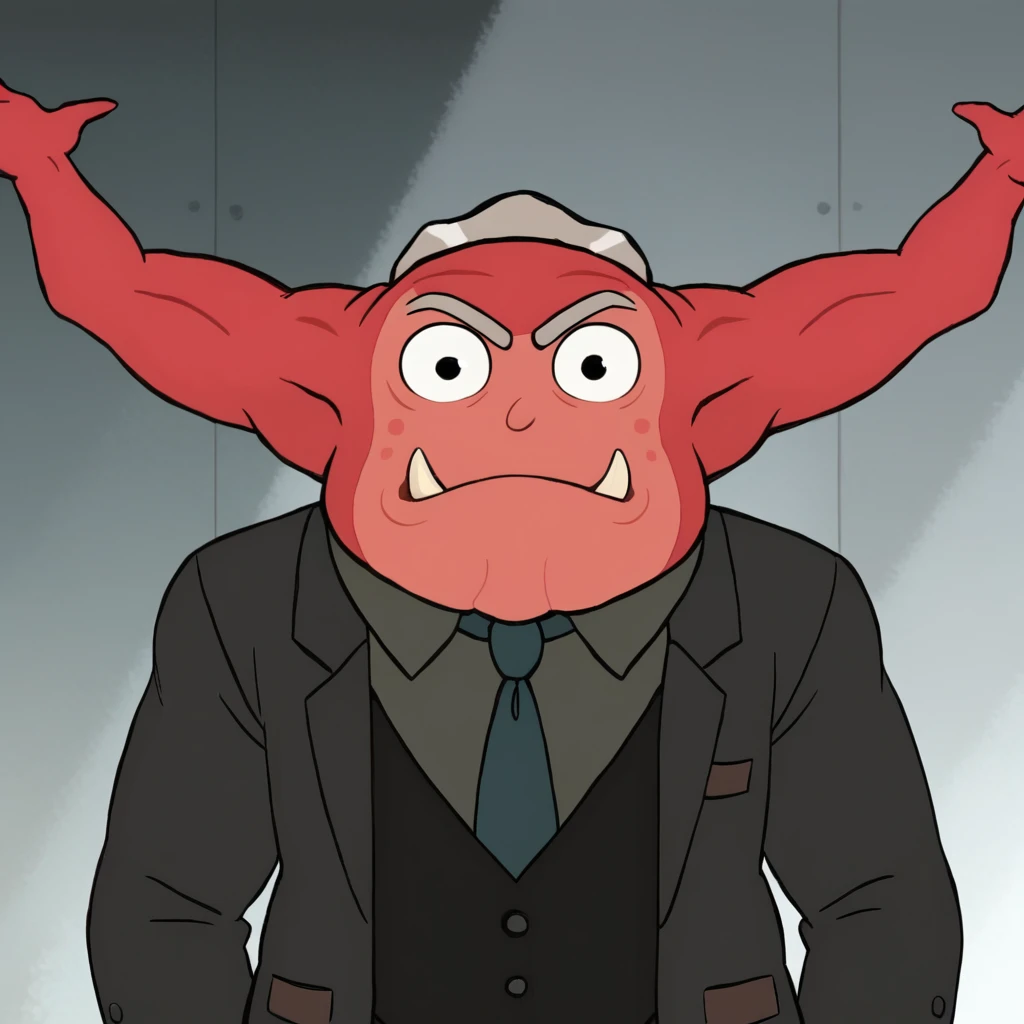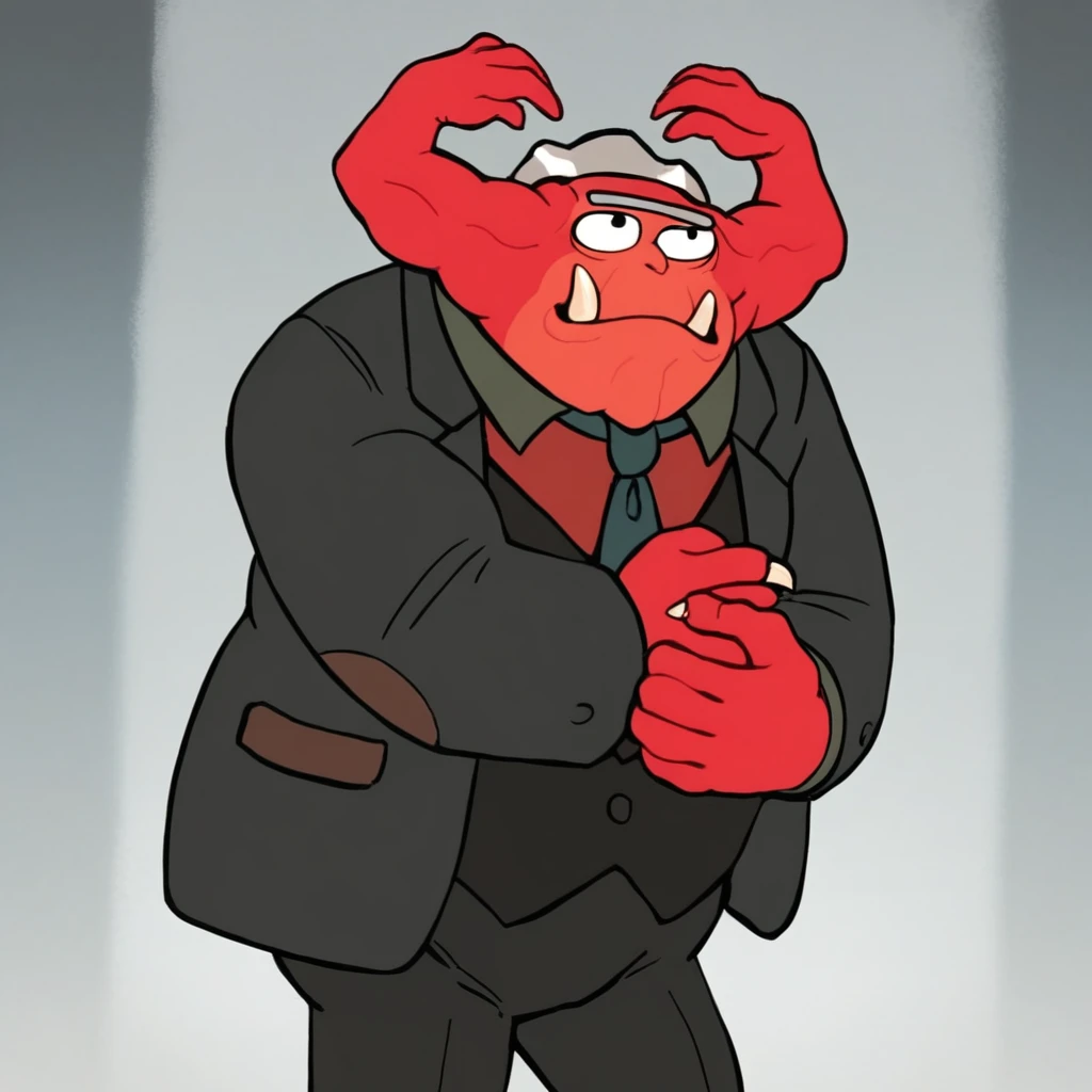 MORTYJR, 1boy, solo, colored skin, black eyes, red skin,