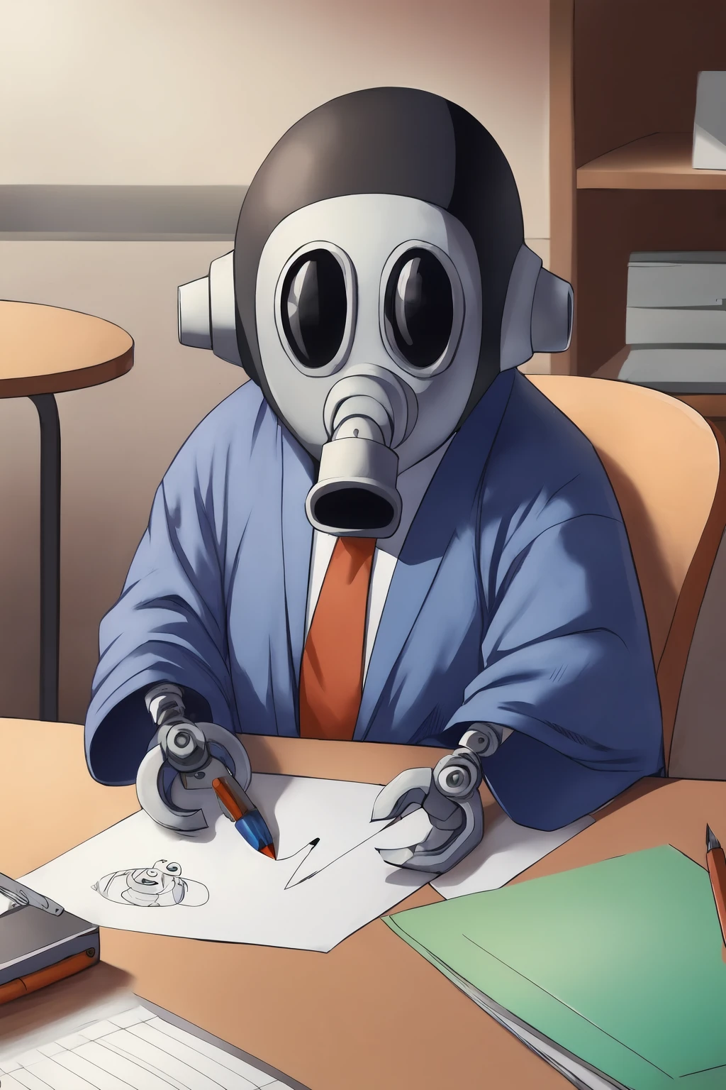 toribot, 1boy, humanoid robot, wrench hand, gas mask