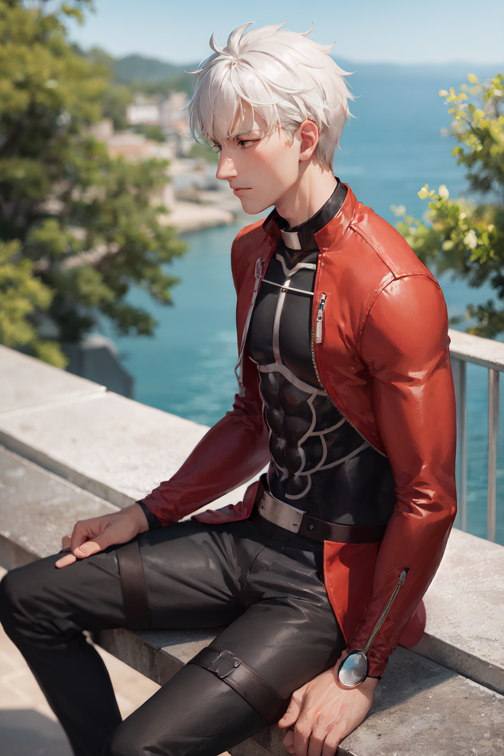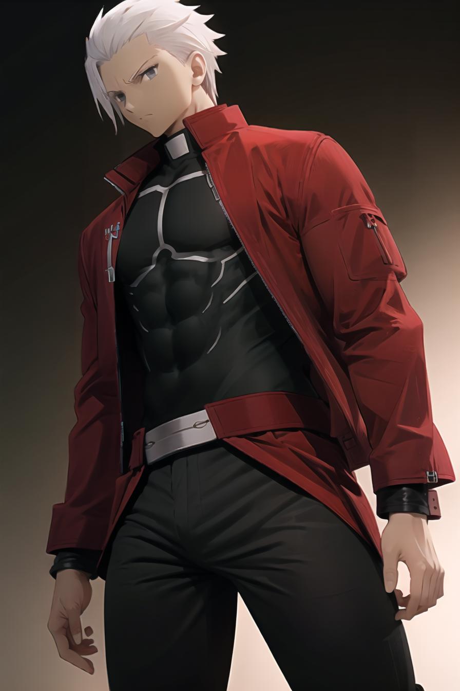 Trigger + Appearance: archer \(fate\),dark skin, dark-skinned male, muscular, white hair, grey eyes
