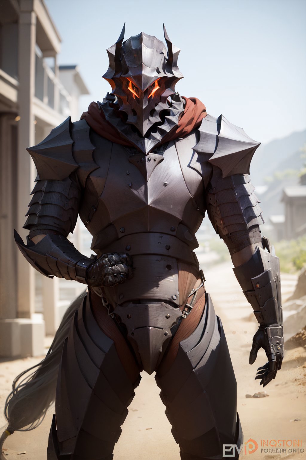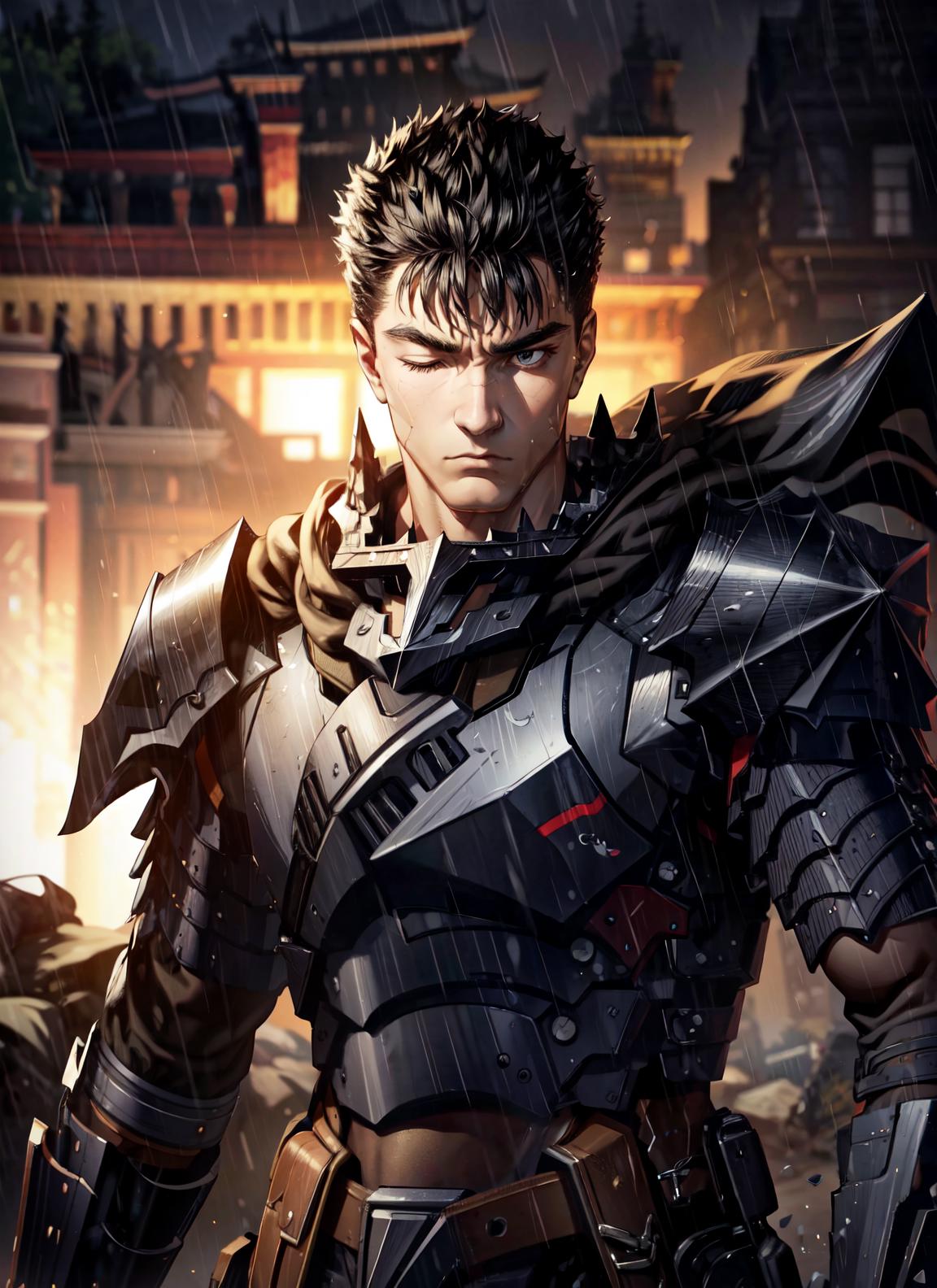 Armor: guts \(armor\), helmet, red eyes, full armor, shoulder armor