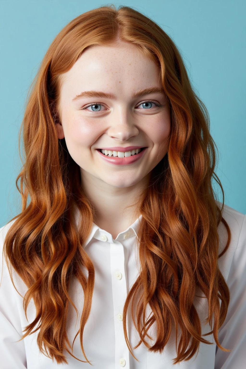 red hair, blue eyes, freckles
