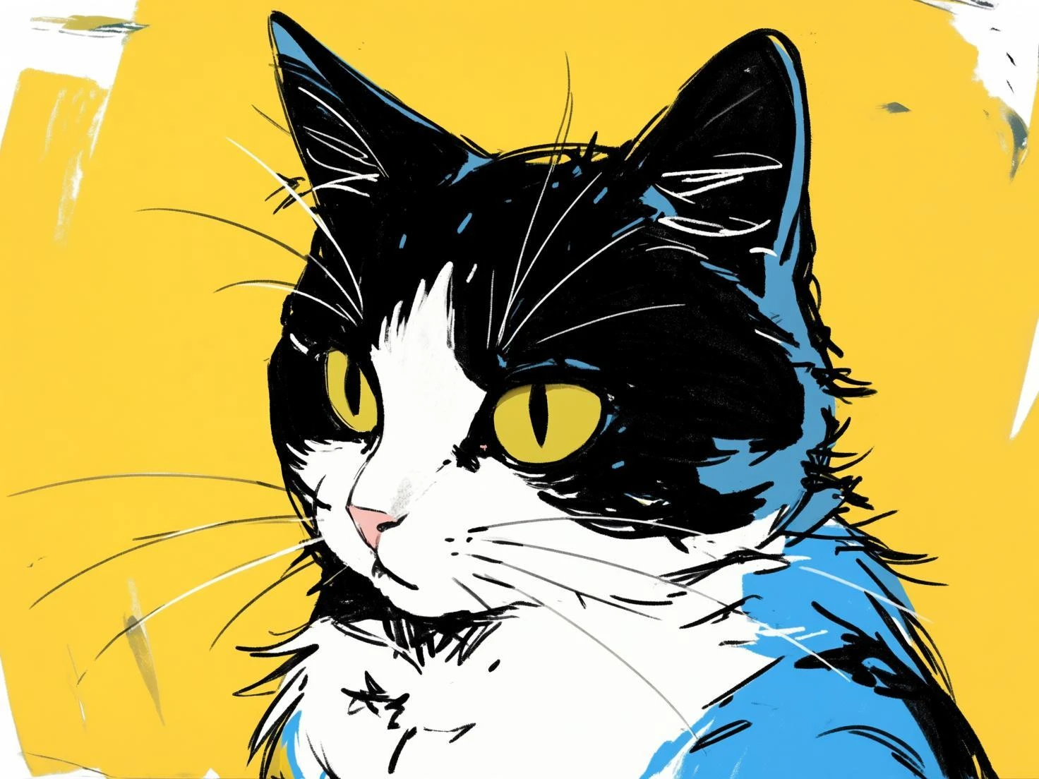 This model specializes in creating a style defined by dynamic and powerful, rough brush lines. It skillfully blends the bold outlines of traditional Japanese art, like Ukiyo-e, with the vibrant colors of modern illustration to form a unique visual language. The images are characterized by high-contrast color blocks and energetic brushstrokes. Whether depicting the agility of animals or the spirit of characters, this style is full of life and expressiveness, injecting a strong visual impact and a hand-drawn artistic texture into every piece.