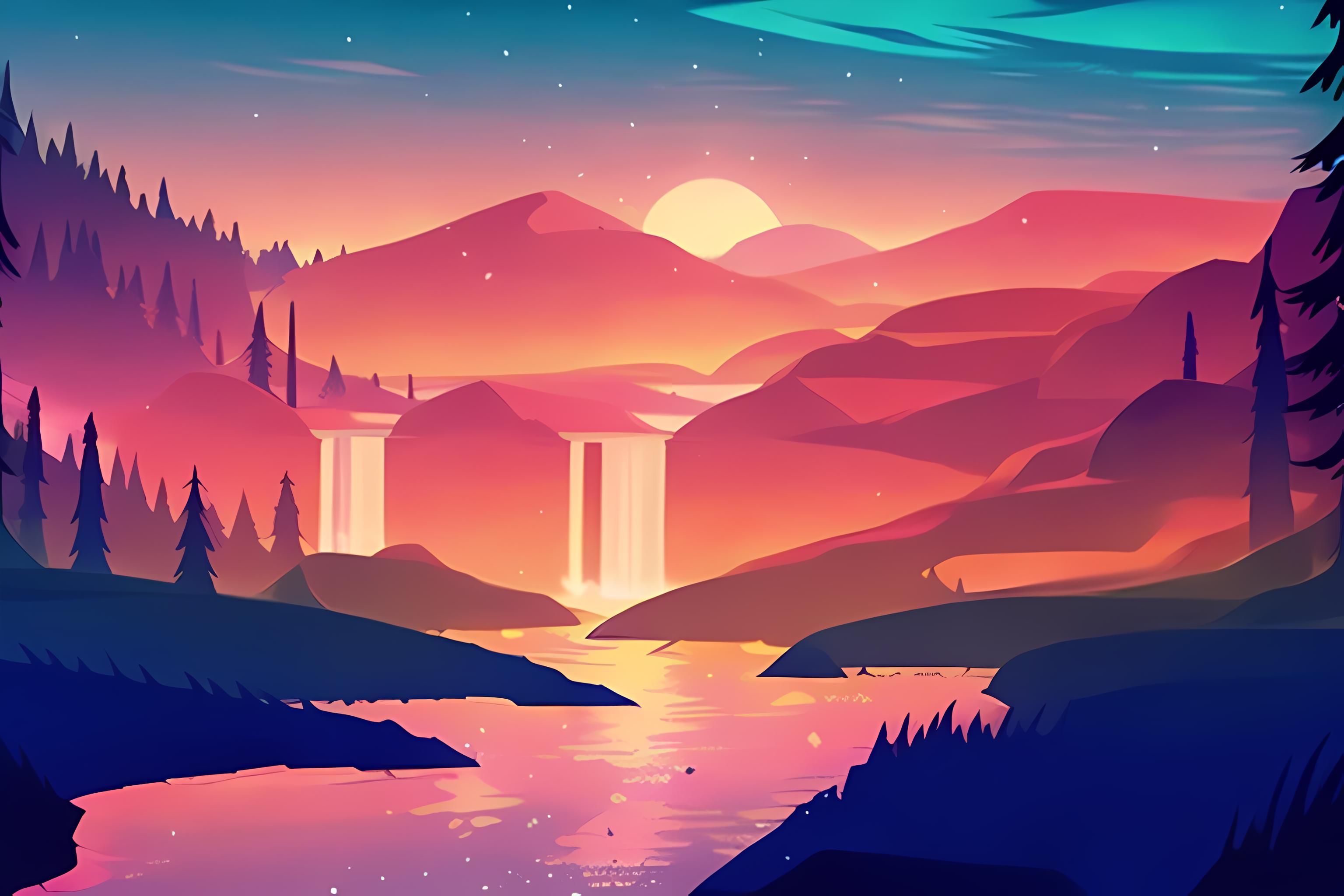 LORA for producing images in the style of minimalistic landscapes, trained on images similar to Dave2d desktop wallpaper styles.