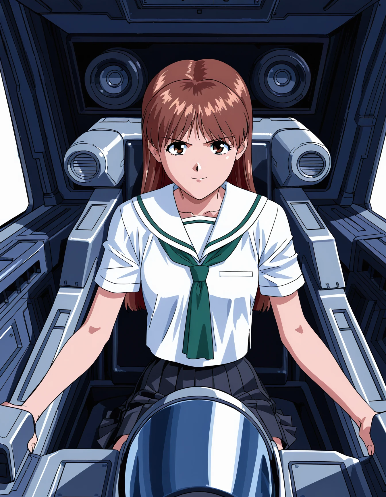 a5uk4gr7, brown hair, brown eyes, serafuku, white sailor collar, short sleeves, green neckwear, pleated skirt, black skirta5uk4gr7, brown hair, brown eyes, hakama, white shirt, black skirt, long skirta5uk4gr7, brown hair, brown eyes, blue hairband, hairband, cardigan, yellow cardigan, dress, short dress, grey dress