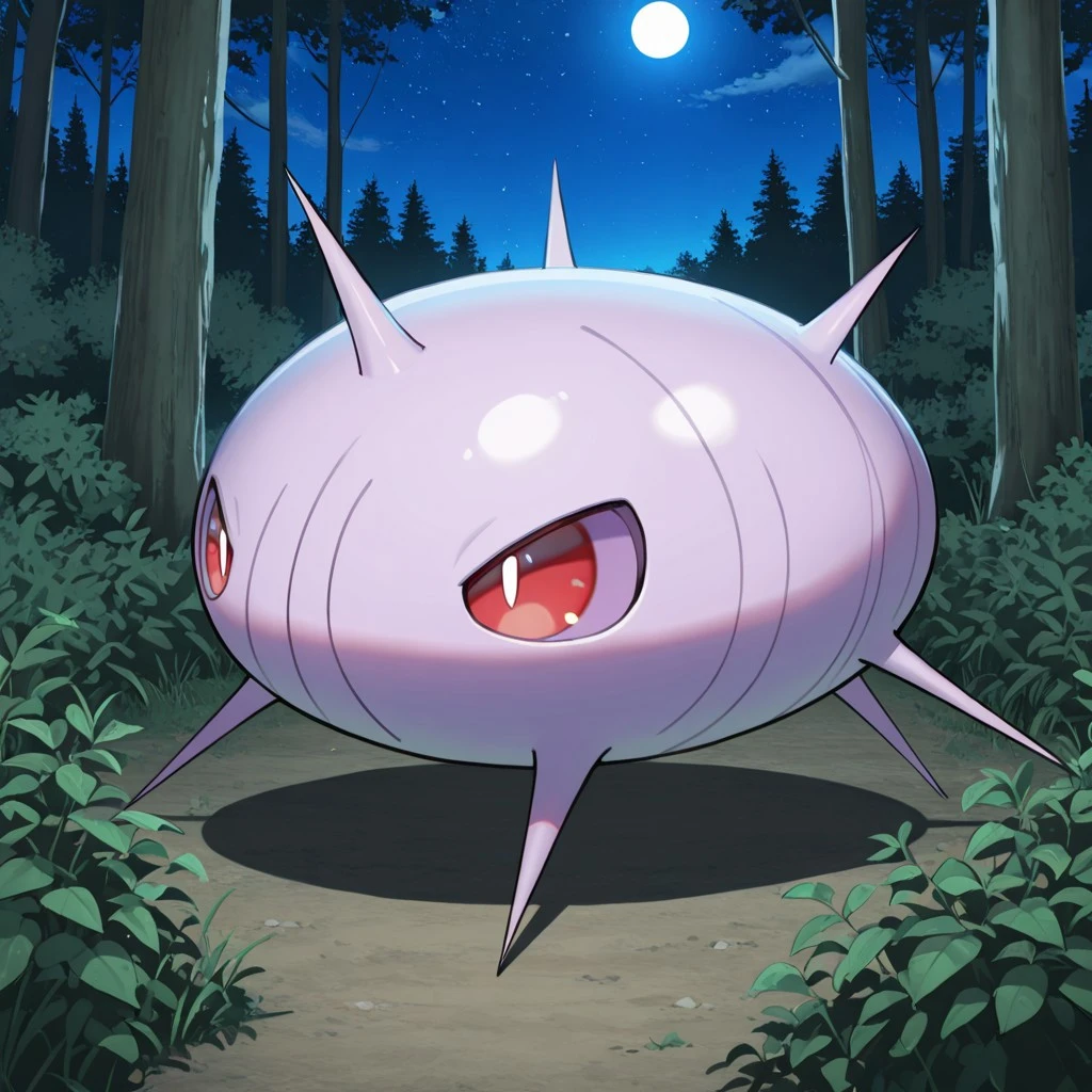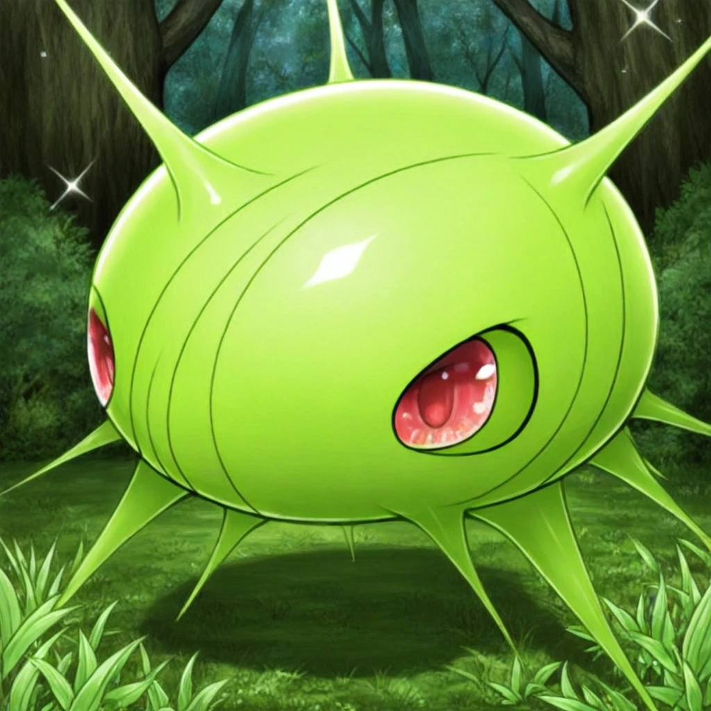 Cascoon_pkmn, round body, red eyes, spiky, pink body