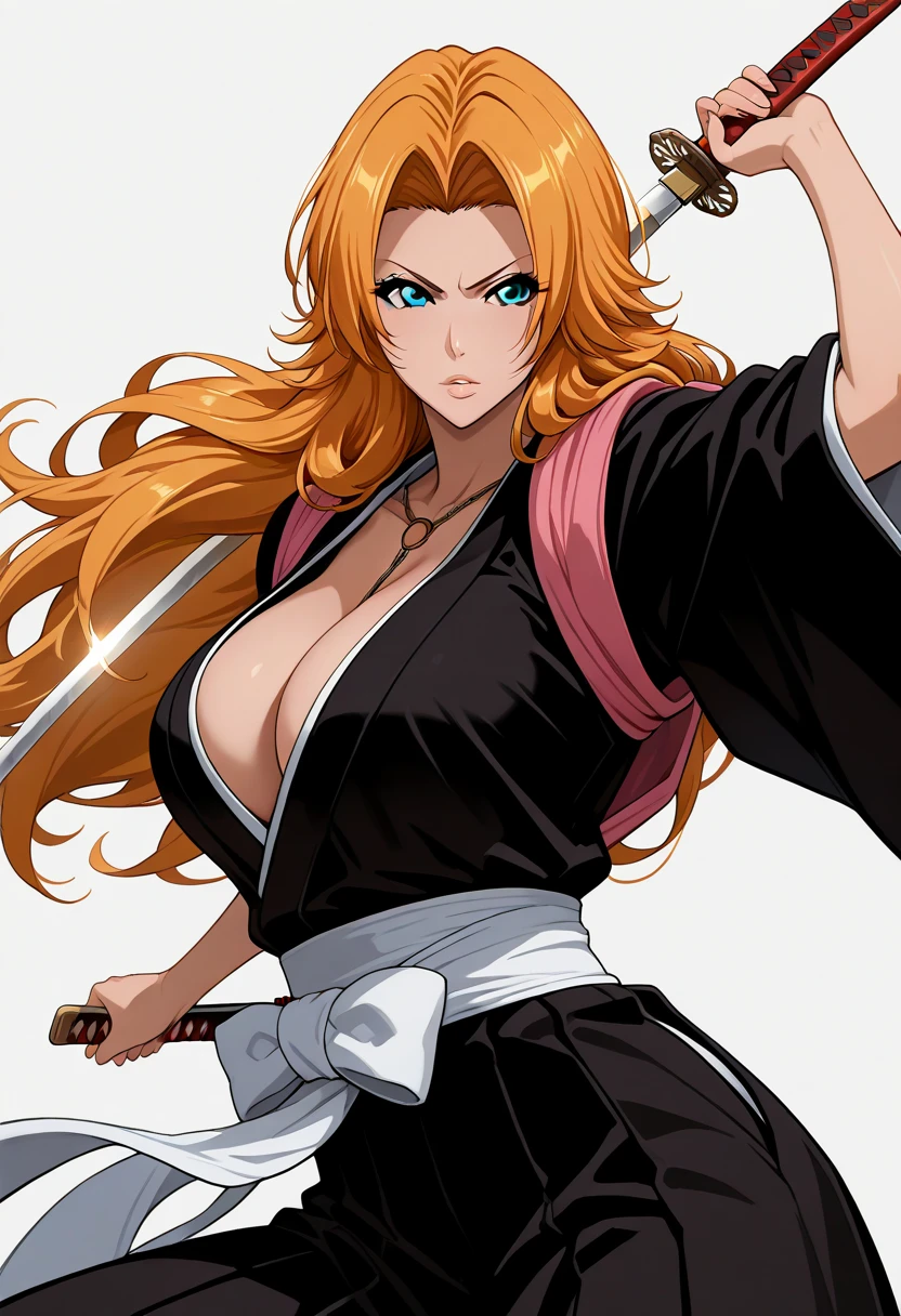 rangiku matsumoto, long hair, grey eyes, orange hair,