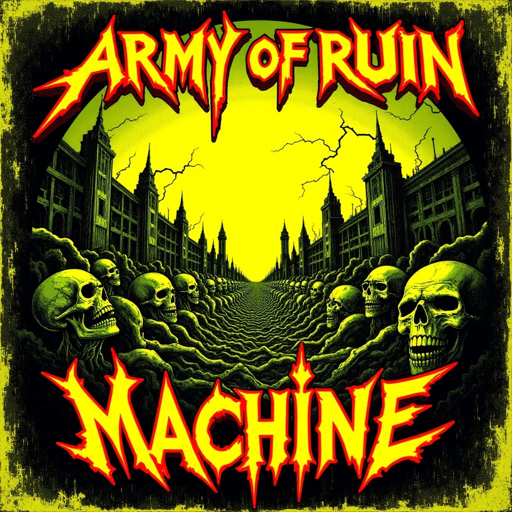 Machine emerged from the underground metal scene in 2030 like a mechanical beast roaring from the depths of oblivion. Born out of the post-apocalyptic aesthetic and nihilistic ethos of their era, the band quickly gained notoriety not just for their blistering sound but for their relentless drive and enigmatic nature. Over their 15-year reign, Machine shattered every expectation, producing a staggering 666 albums—one for every symbolic sin, as fans and critics speculated—before vanishing without a trace during a notorious concert at Camlan in 2045. To this day, their disappearance remains one of the music world’s most enduring mysteries.