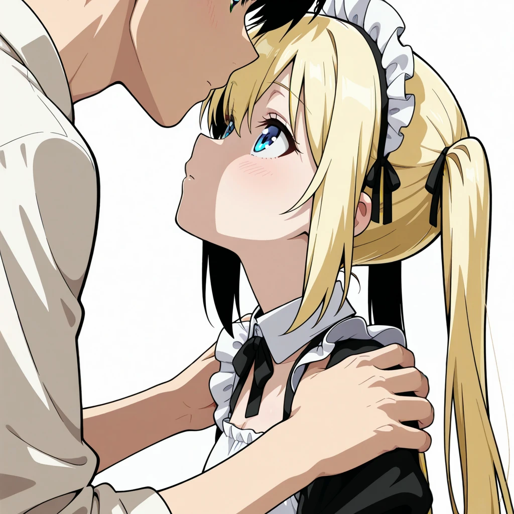 目的としては斜め上に見上げた少女がキス寸前である状態
