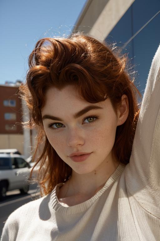 Trigger Word SabLynn should be all you need, but words like red hair, freckles, can also help if some details get lost