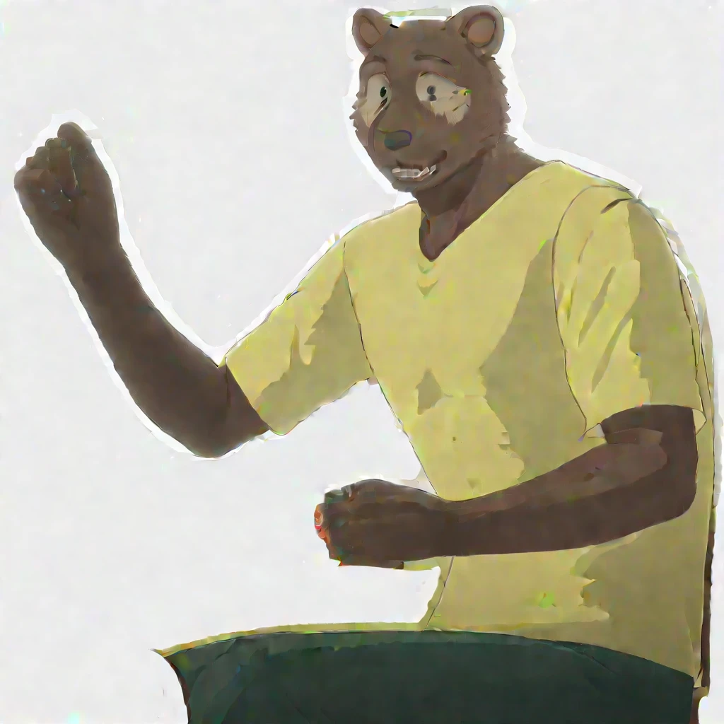 anthro, furry, bear, bear ears, brown fur, multi-colored fur, small black eyes, beady eyes