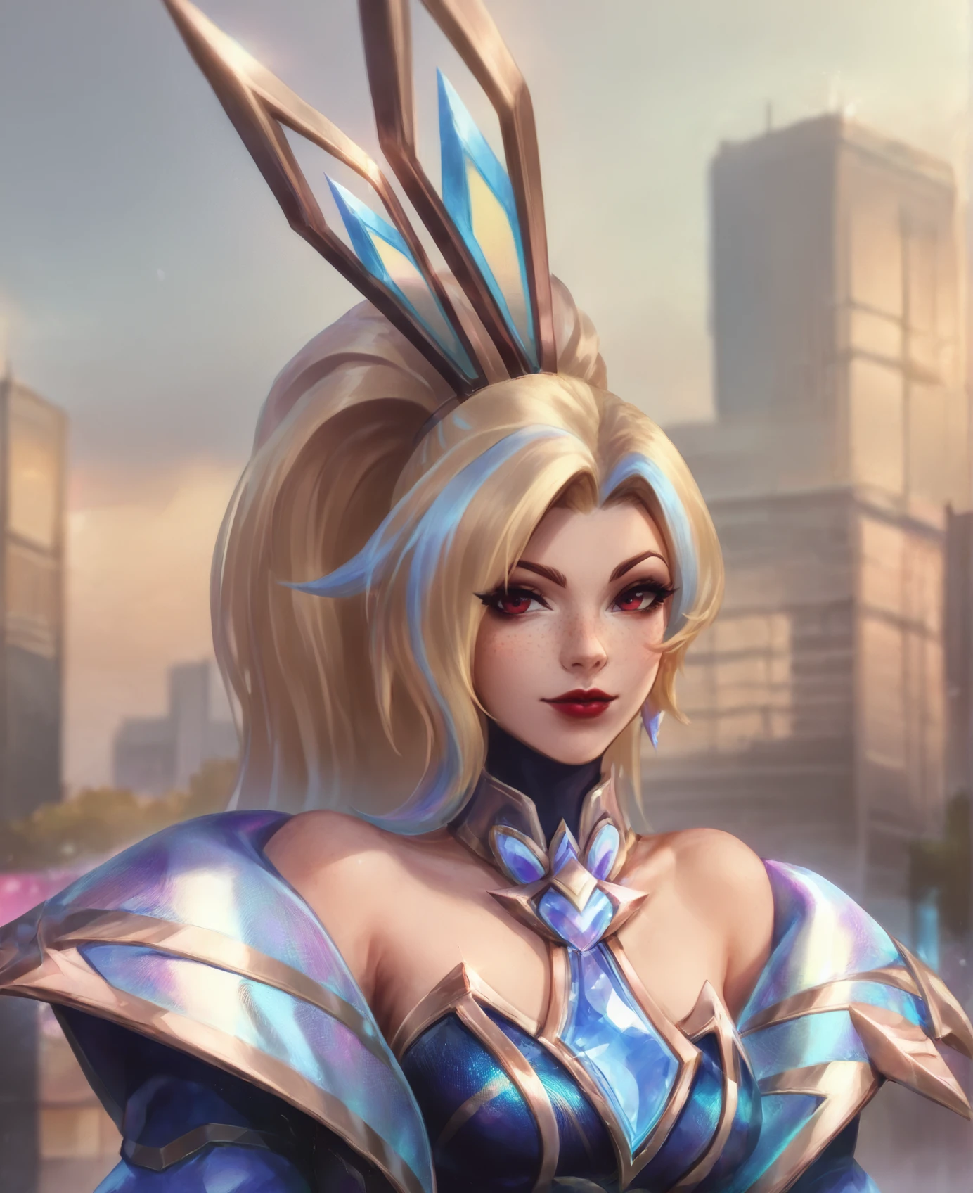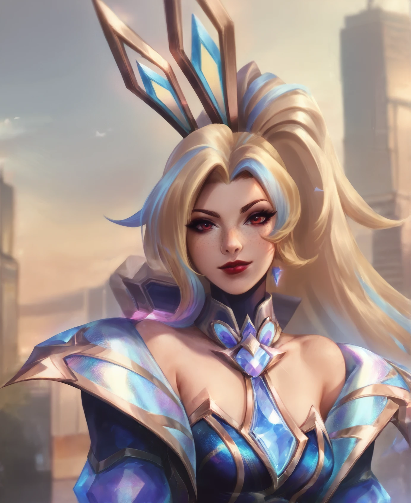 blonde hair, multicolored hair, bunny ears, blue top, cropped jacket, detached collar,