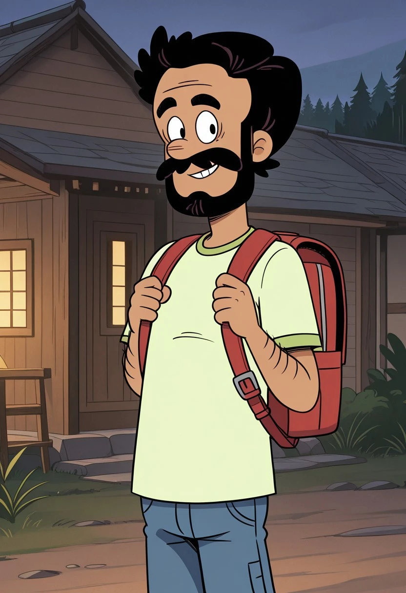 ArturoSantiago, 1boy, solo male, human, mature male, black eyes, short black hair, facial hair, mustache, beard, tan skin, athletic build