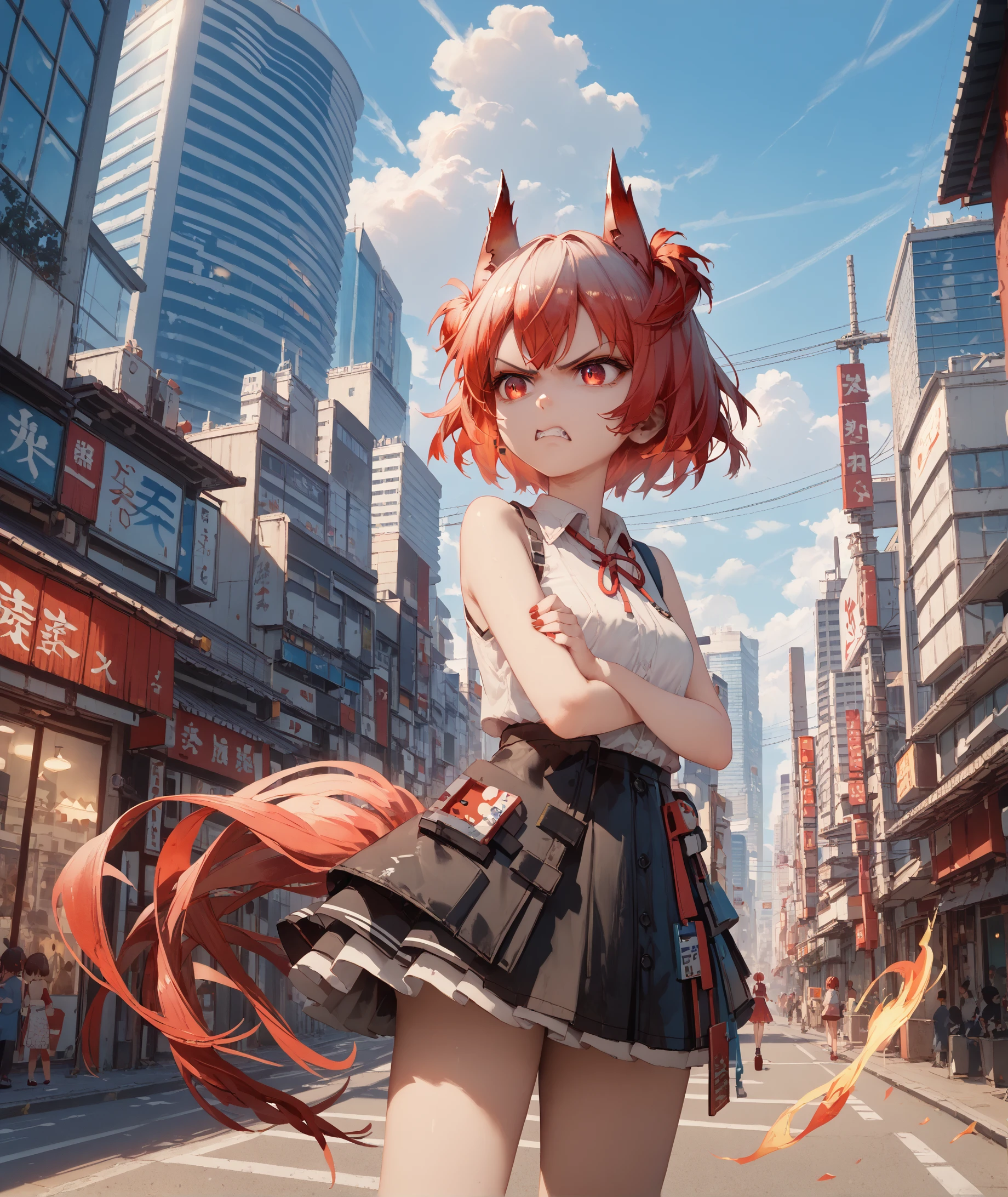 fiammetta, short hair, red hair, animal ears, red eyes