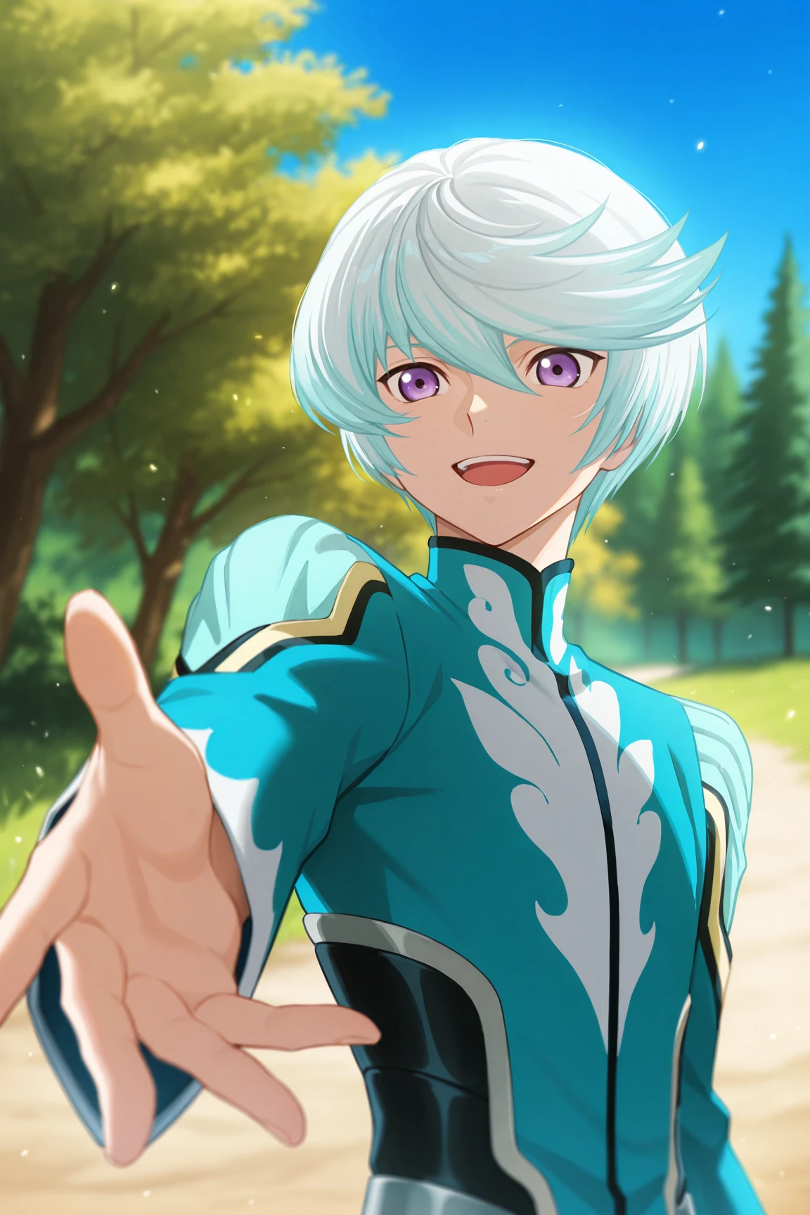 mikleo, blue hair, purple eyes,