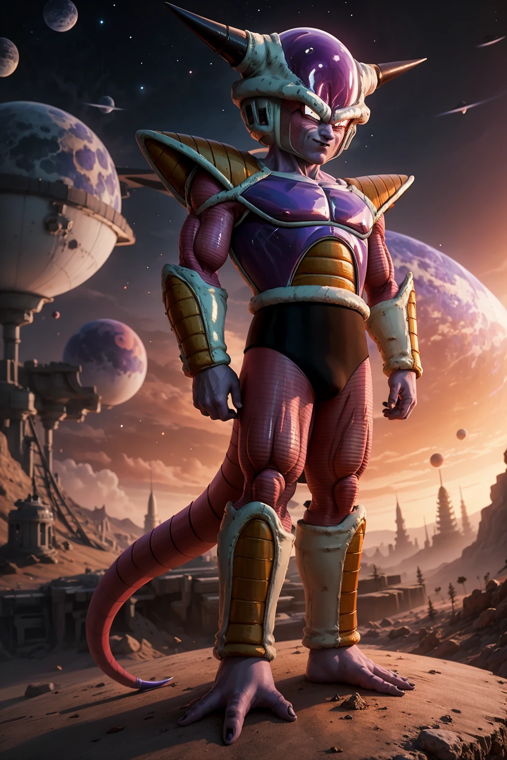 Other prompts : 1boy, red eyes, horns, armor, saiyan armor, tail, black nails