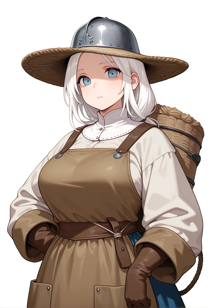 1girl, white hair, medieval outfit, medieval chef, (american shot), white background, best quality, amazing quality