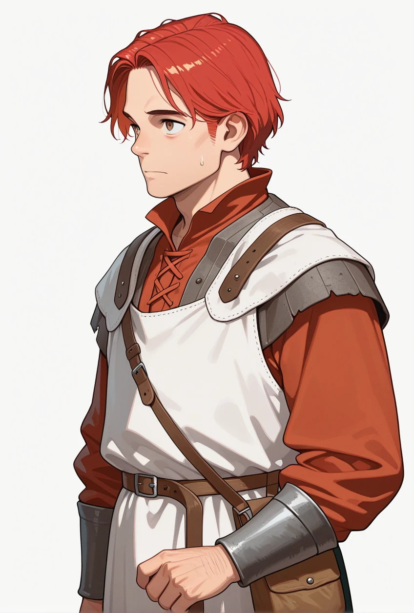 1boy, brown hair, medieval outfit, medieval bartender, (american shot), white background, best quality, amazing quality,