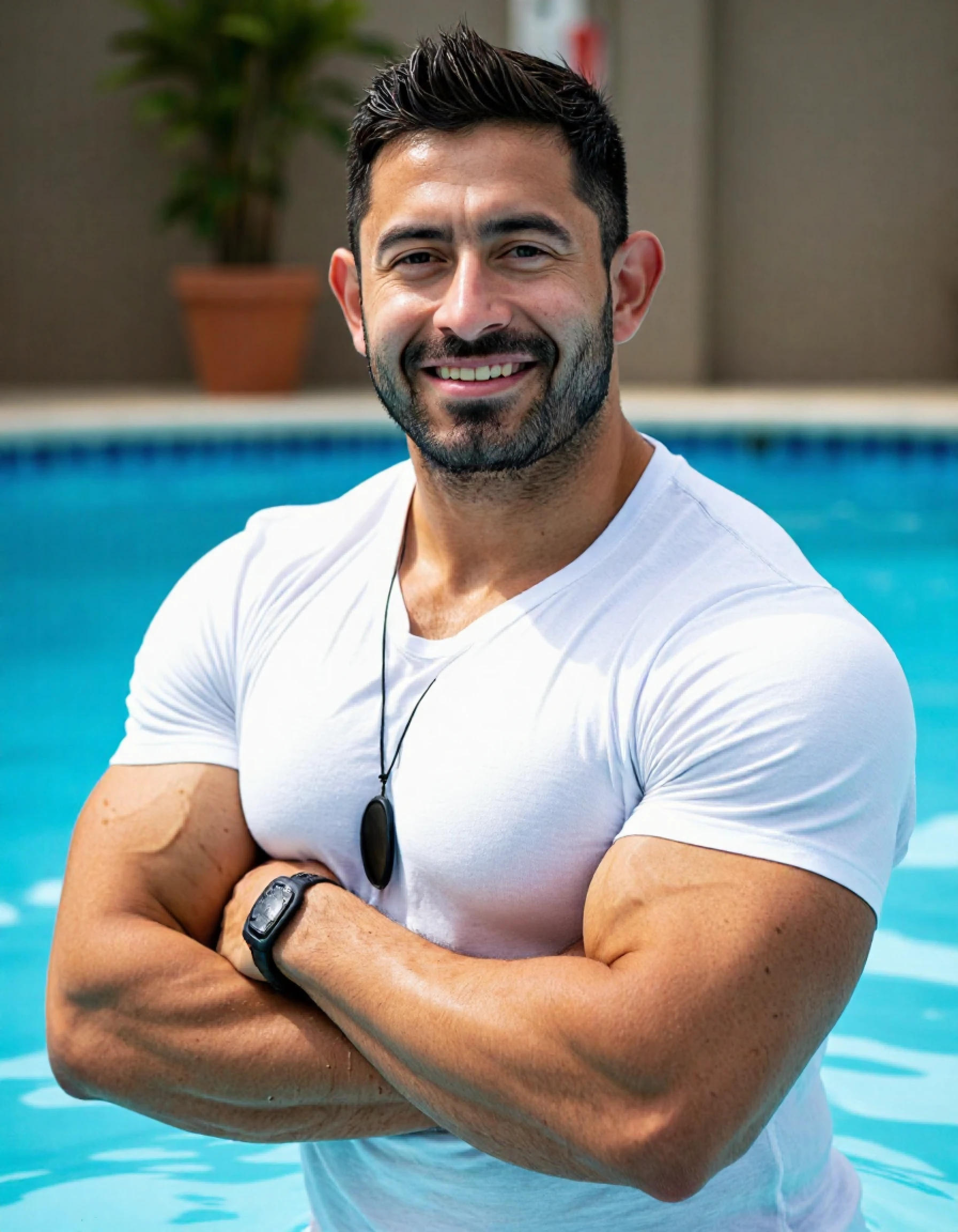 A LoRA based on the spectacular MateoMuscle. I'm looking at his heart, it's not my fault his pecs are in the way.