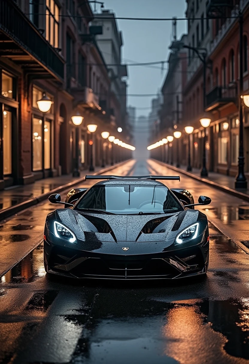 Supercars in various scenes, like riverbank roads, industrial - style showrooms, and autumn rain - soaked cities, edgy designs, deep tones.