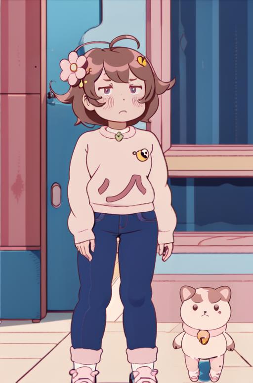 Alas, this doesn't do PUPPYCAT ALONE, but it does do a consistent style (while trying to throw a version of puppycat in someone's arms, in the corner) - it needs an update, but we're still learning making datasets.