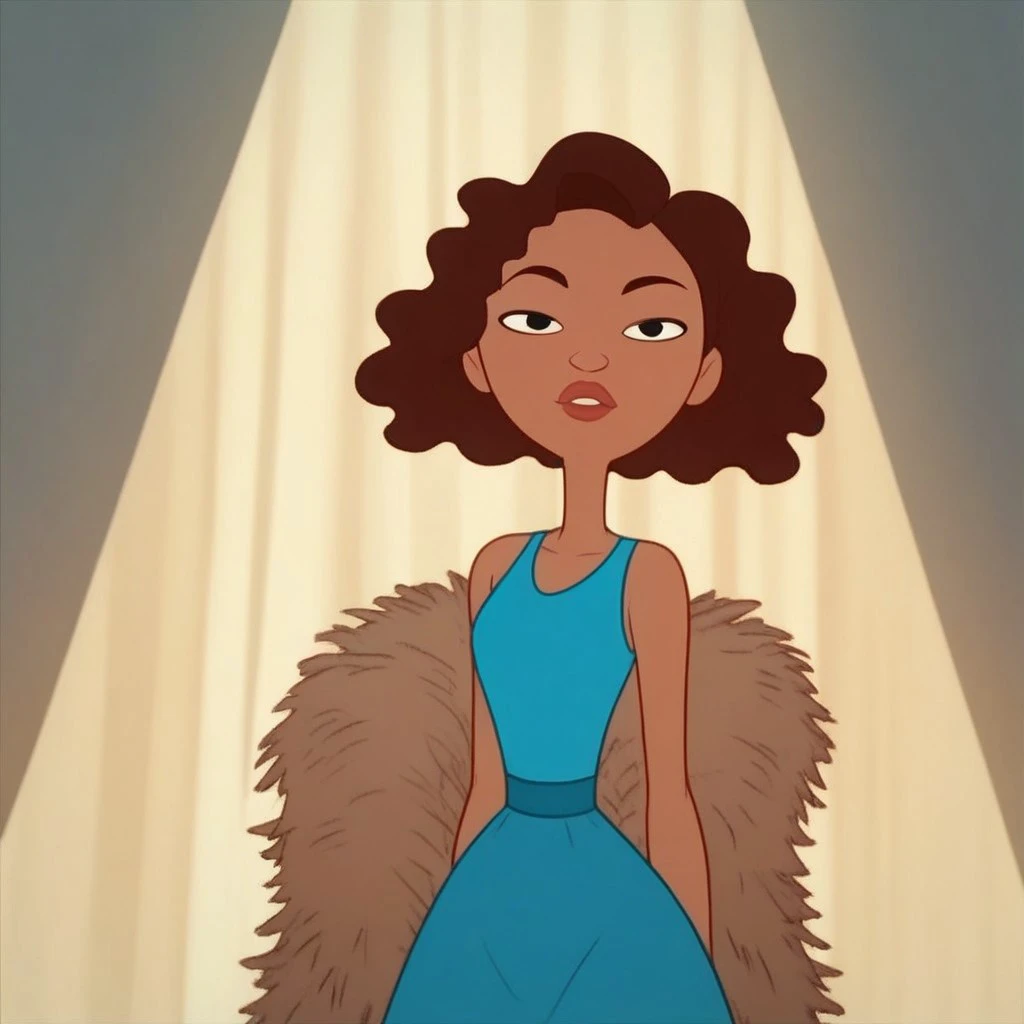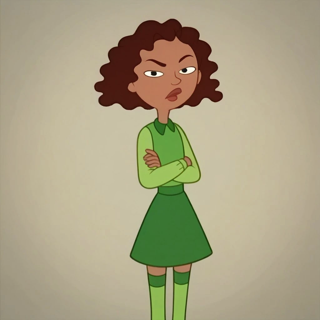 Ashley Tomassian, 1girl, black eyes, curly hair, short hair, brown hair, dark-skinned female, thick eyebrows, lips