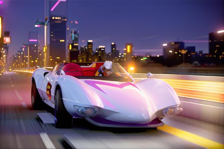 • Button E, Evening or Illuminating Eye or Special Illumination (イブニングアイ, Ibuningu Ai, Evening Eye): The control for special illumination which can be traversed singly or in tandem, which enables the driver to see much farther and more clearly than with ordinary headlights. When used with the “night shades” attached to Speed's helmet, his vision is enhanced with infrared light. Button E was later modified to activate mini-wings (Pops got the idea from the Car Acrobatic Team) that would slide out from under the car to assist Speed in long jumps.