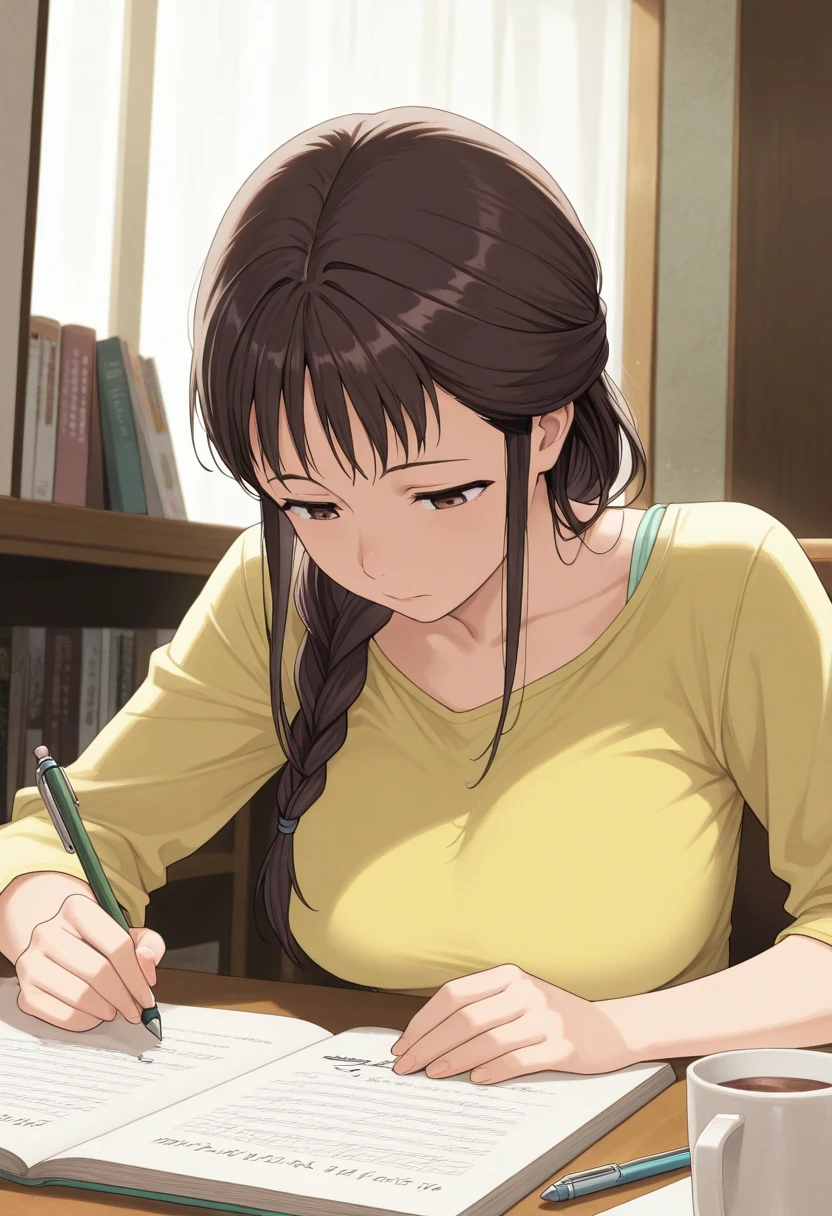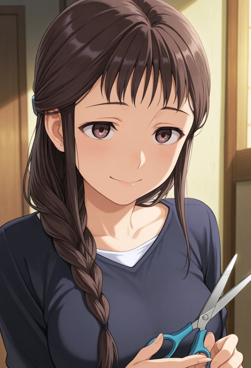 Trigger Words: segawa misato, long hair, brown eyes, brown hair, single braid