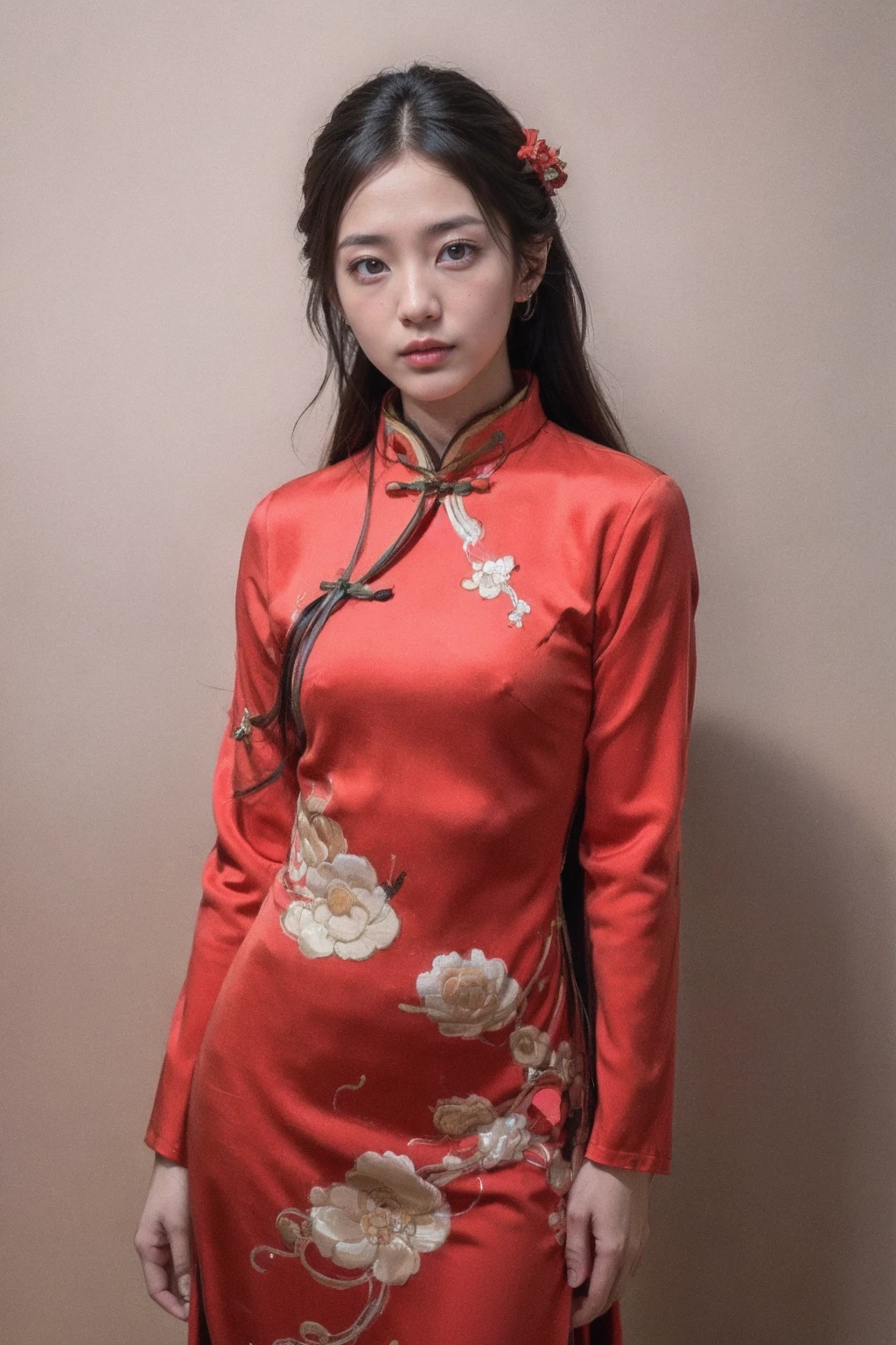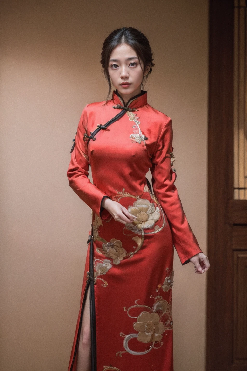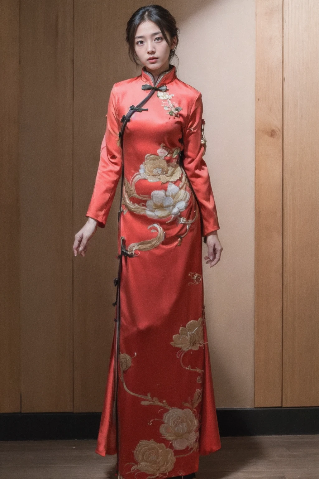 新年红色长袖旗袍