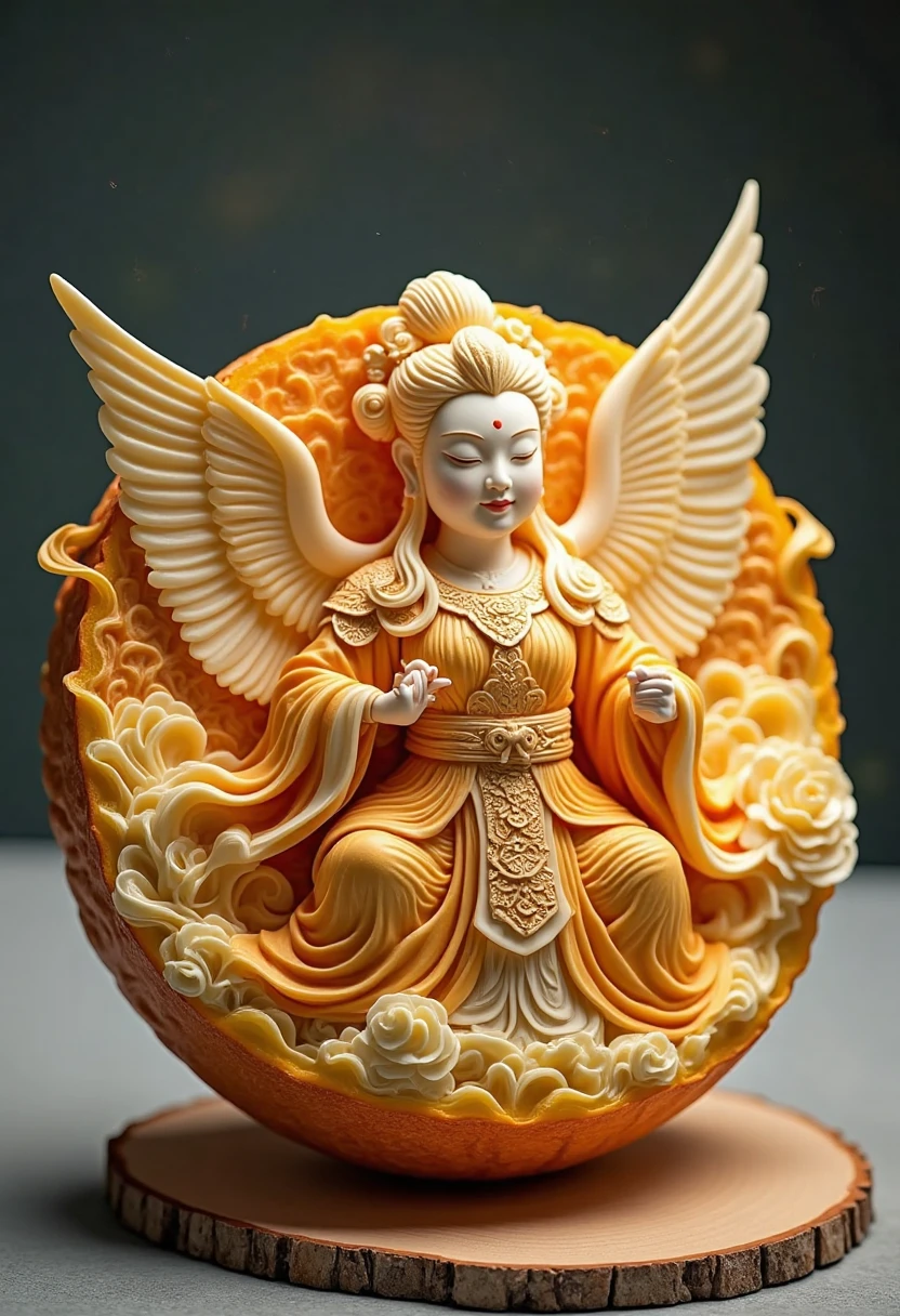 Food carving art combined with mythology, design a Chang'e, with mooncake as carrier, present the beauty of flying to the moon.
