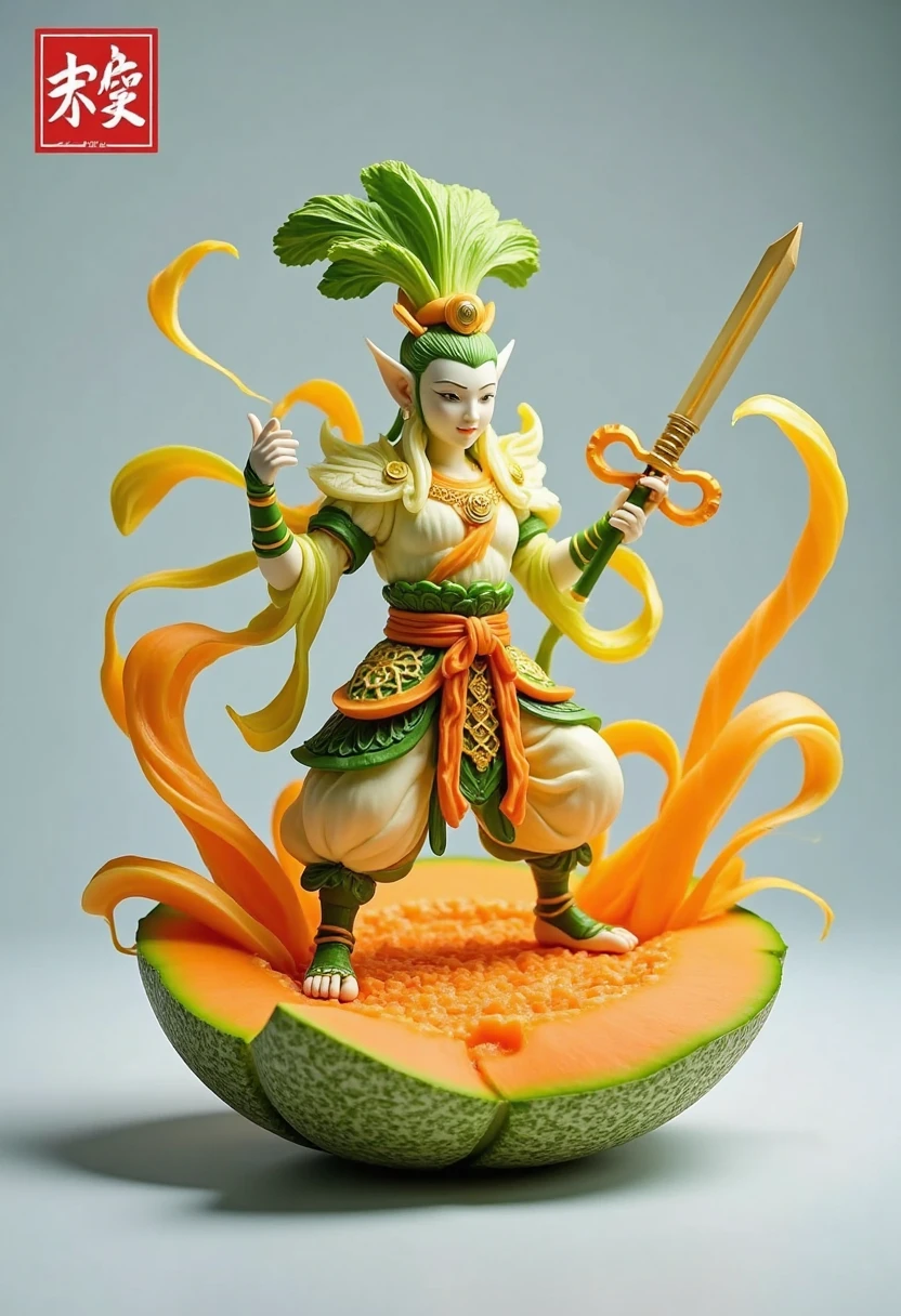 This LoRA model focuses on fruit and vegetable carving art, accurately presents mythological characters, and reshapes classic mythological images with fruits and vegetables.