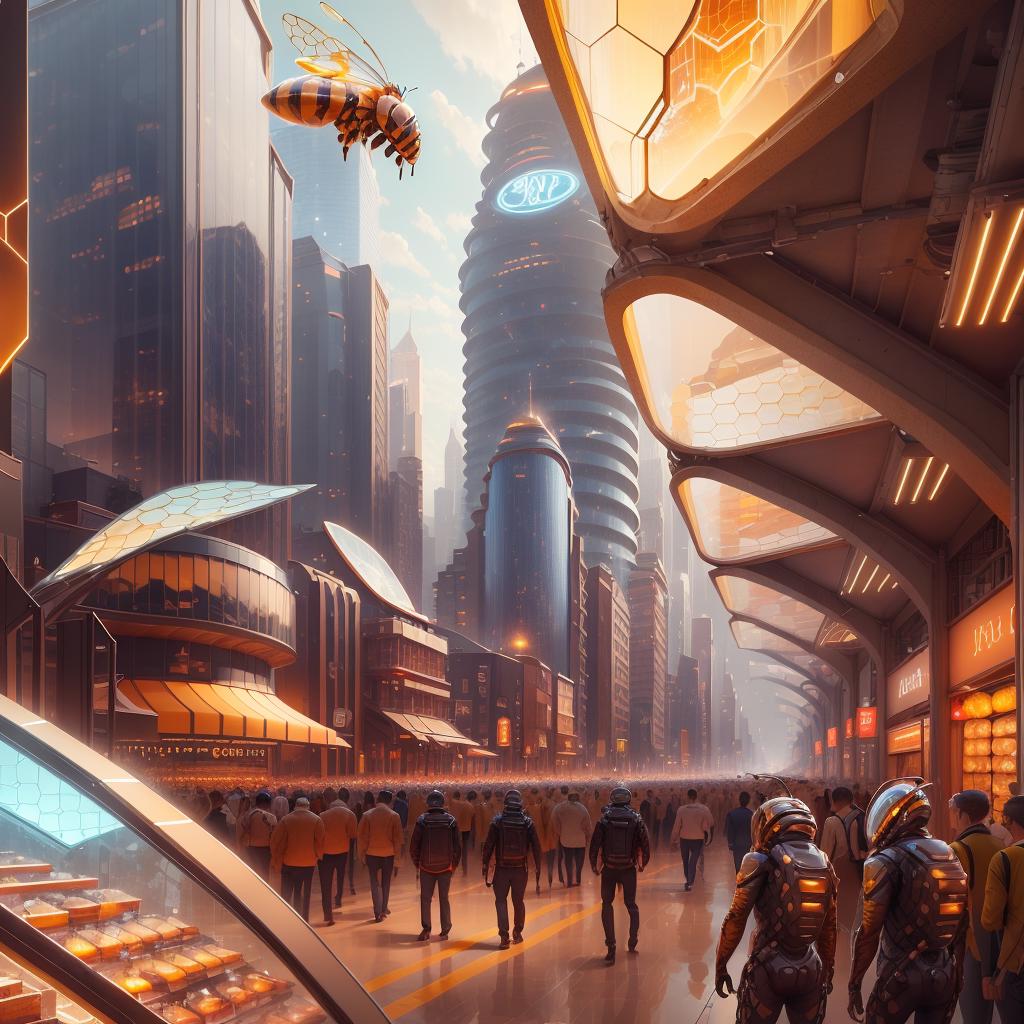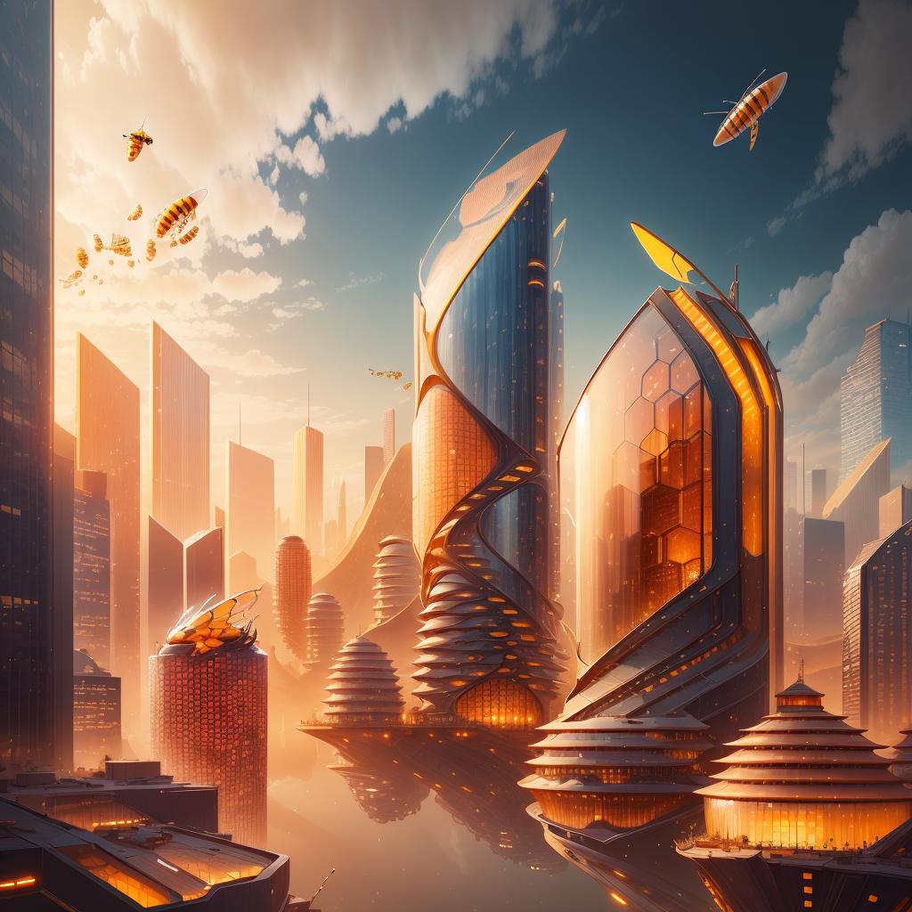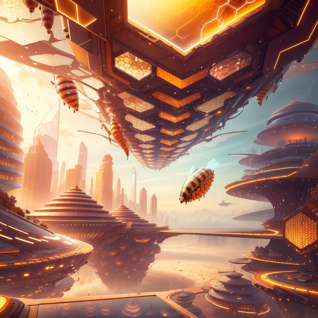 Honey is Power, Food and resources, Wax is a structural material, Bees are idols, deities and architects, This LoRA take those premises and forges them into Honey tech