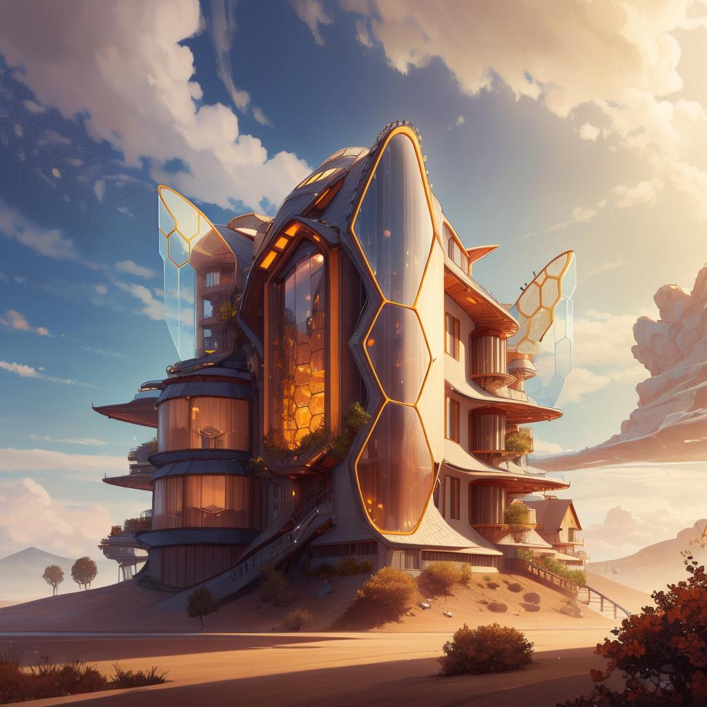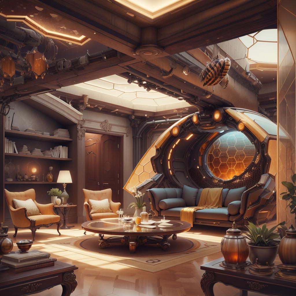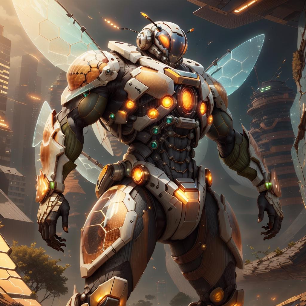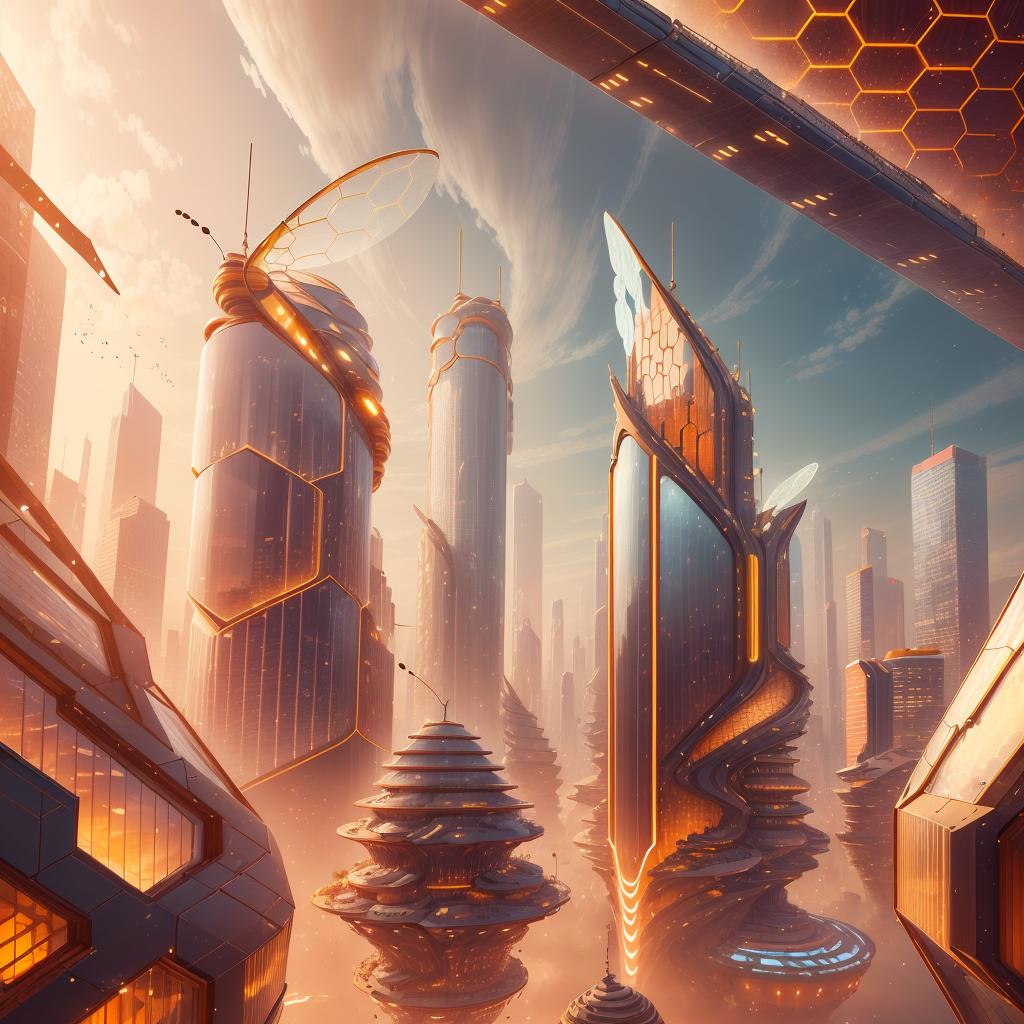 Honey is Power, Food and resources, Wax is a structural material, Bees are idols, deities and architects, This LoRA take those premises and forges them into Honey tech