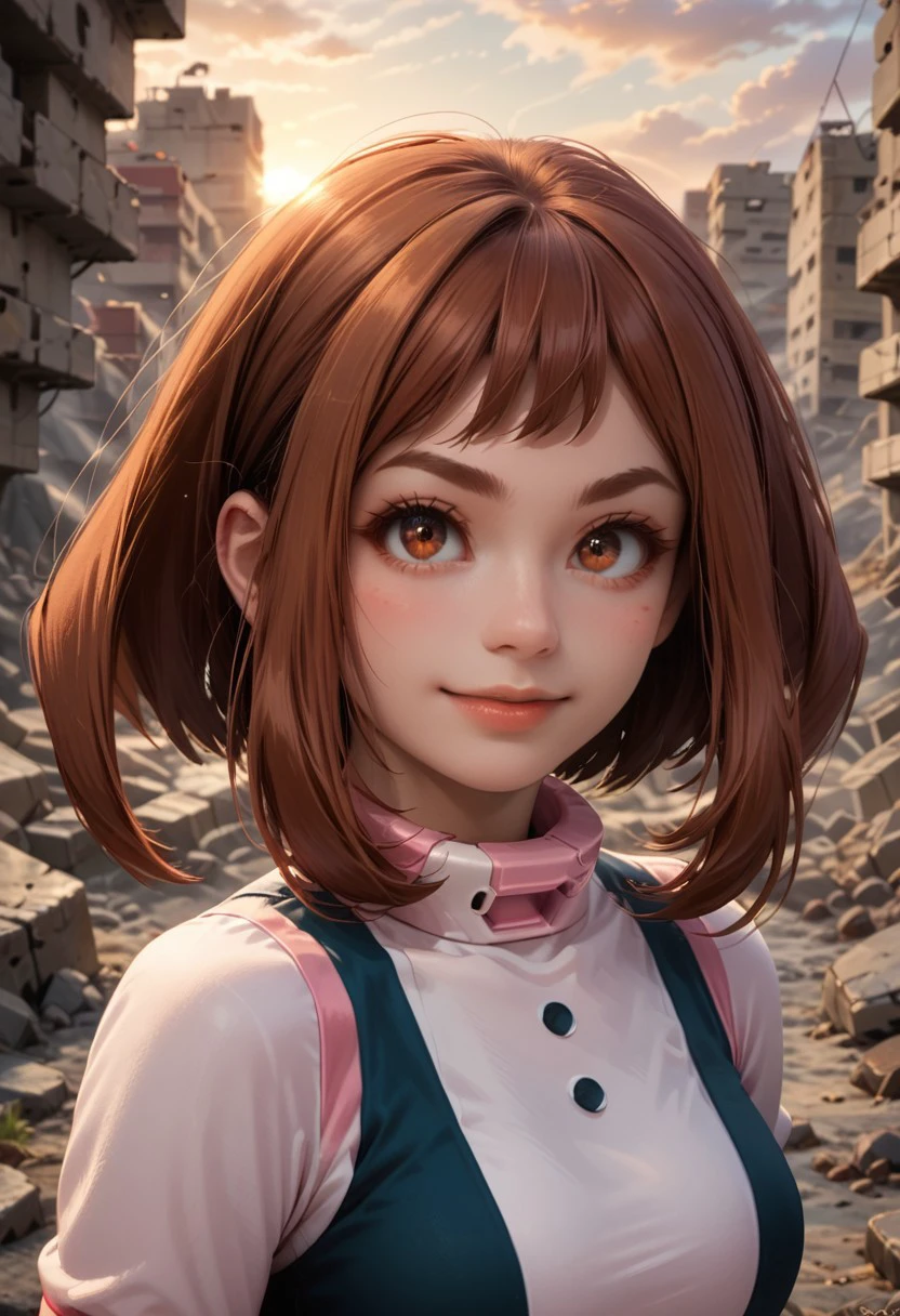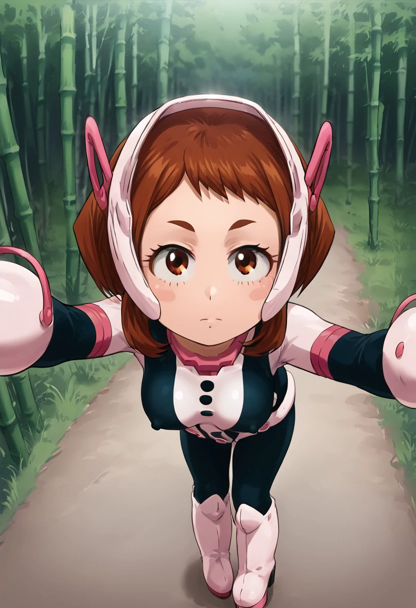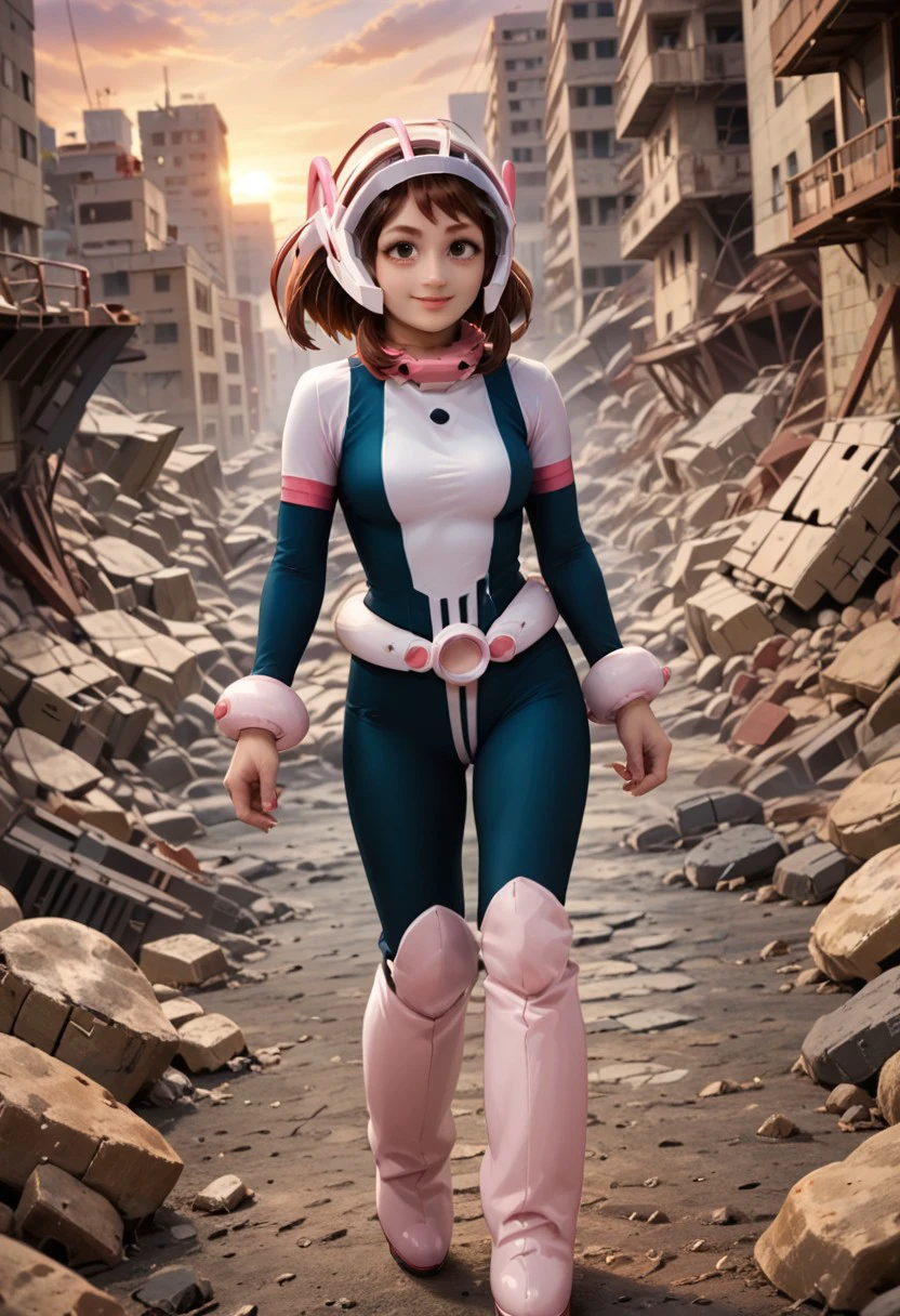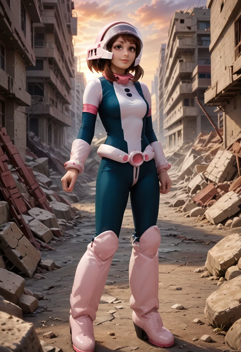 Ochaco uraraka, boots,high heel boots,short hair,uravity costume, hero costume,medium breasts, ochaco, brown hair,sidelocks,helmet, uravity helmet,