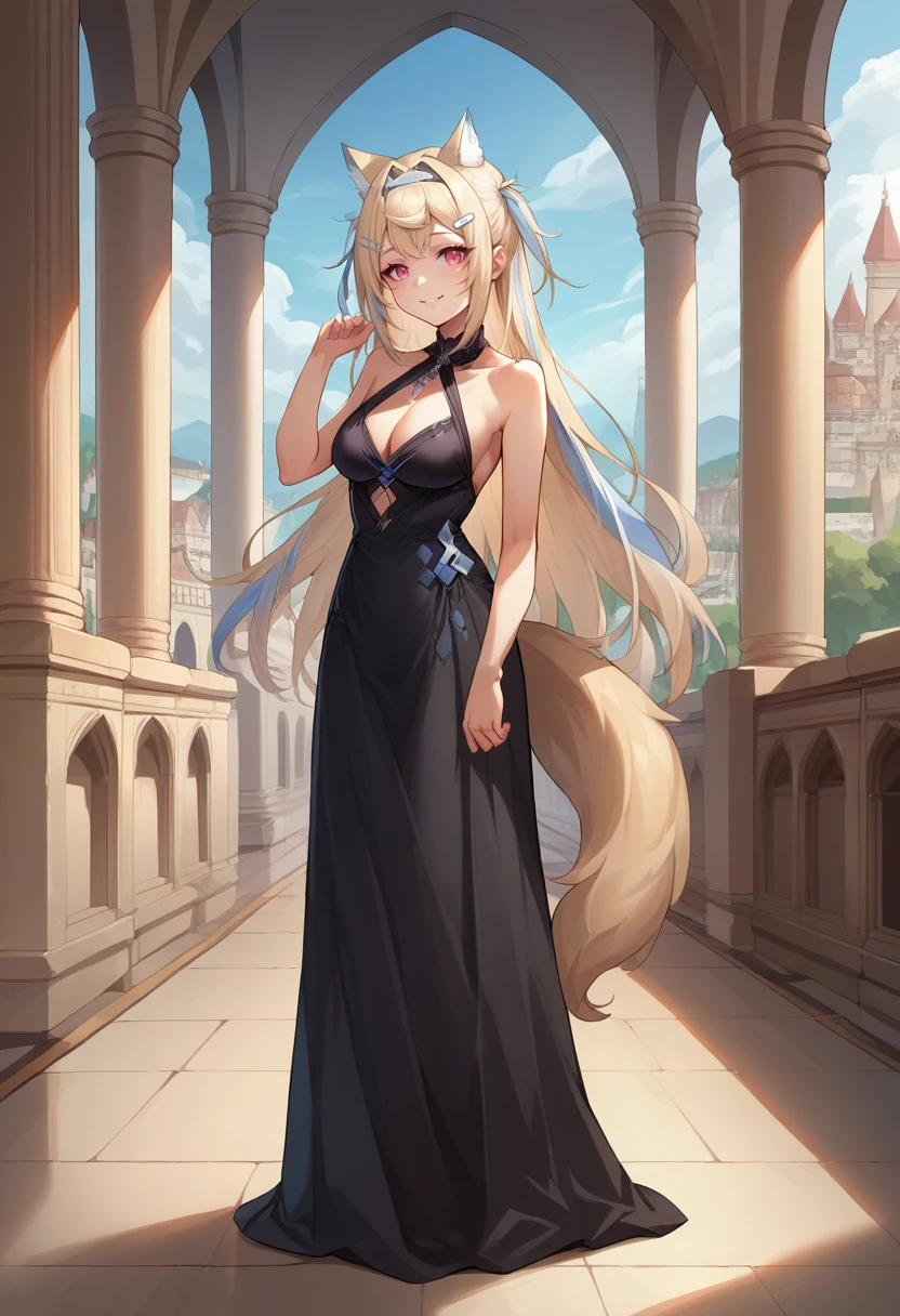 FuwawaAbyssgard, long hair, two side up, streaked hair, hairband, hairclip, tail