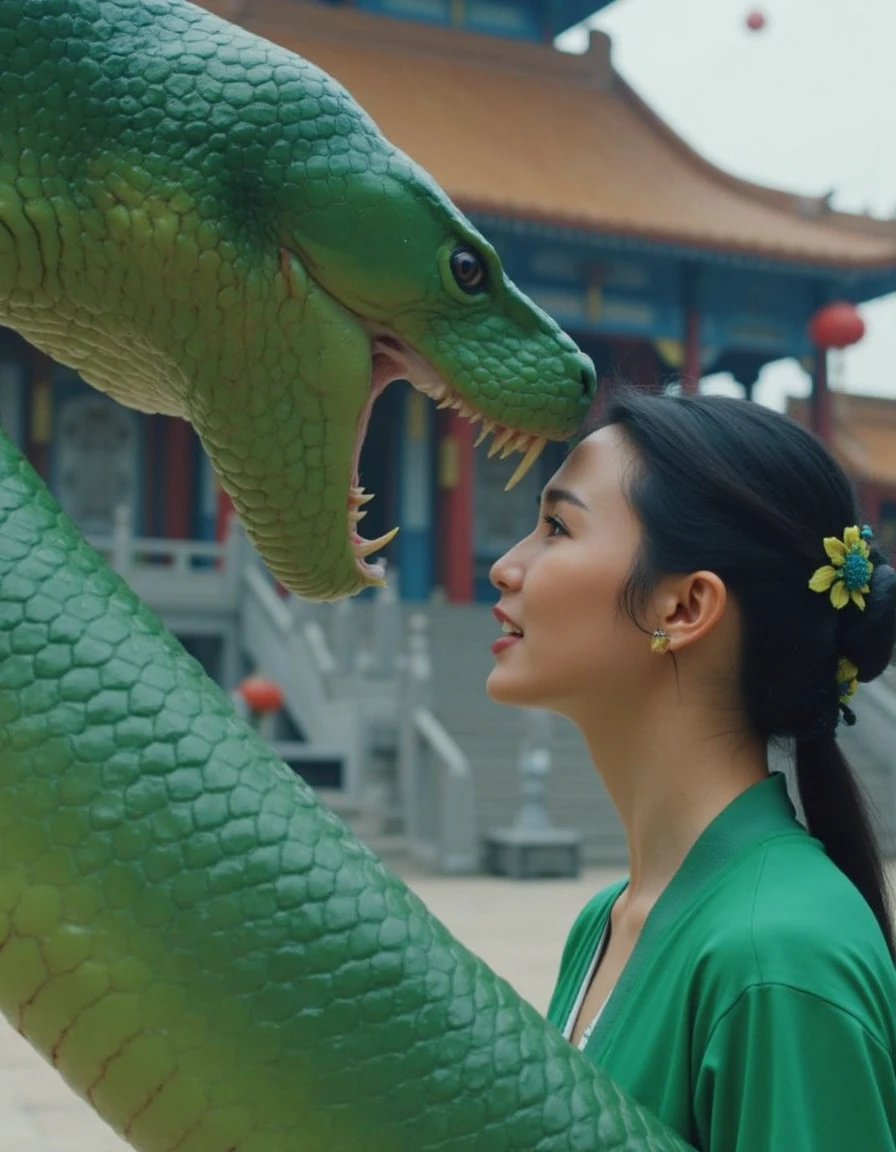 Green Snake is about a mischievous snake (Maggie Cheung) who assumes human form interferes with the romance between her reptilian sister (Joey Wang) and a hapless man (Wu Hsing-kuo).