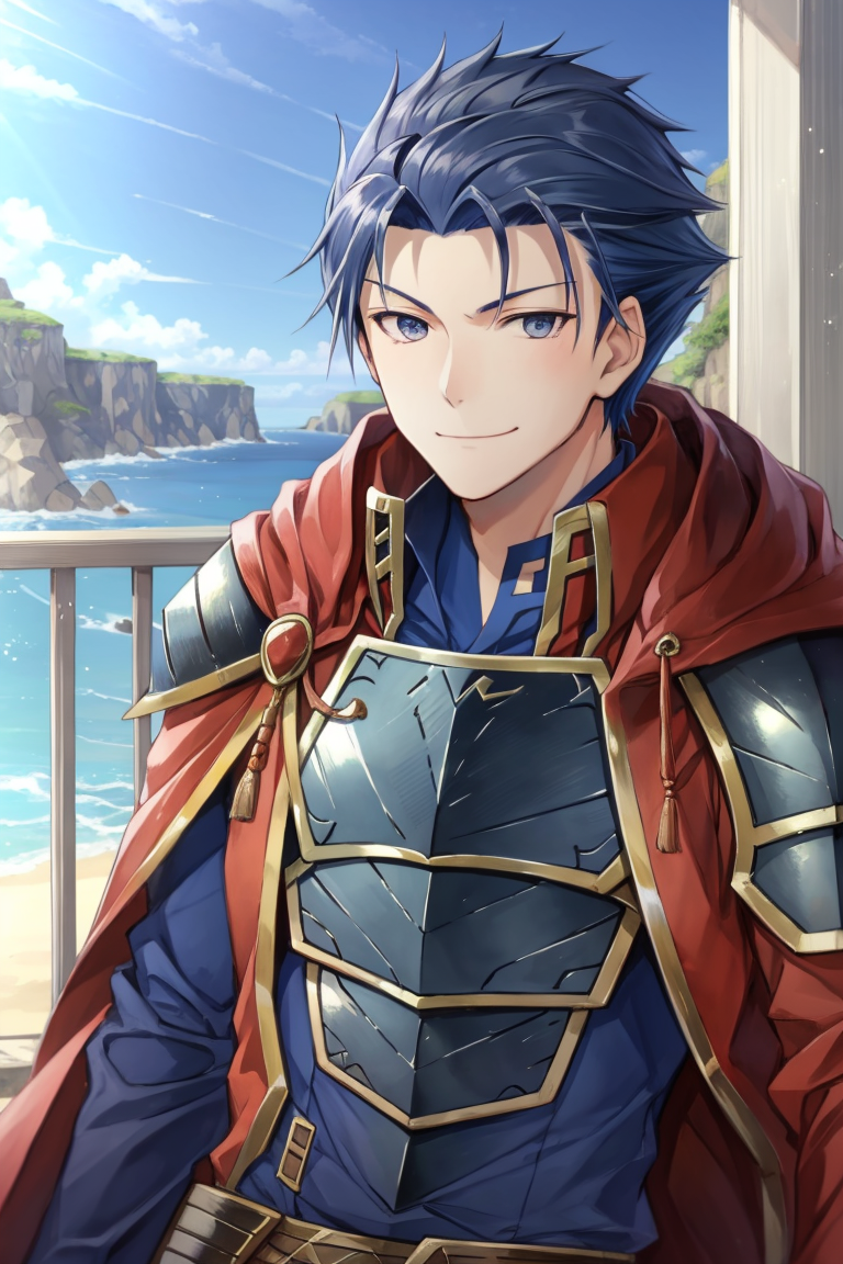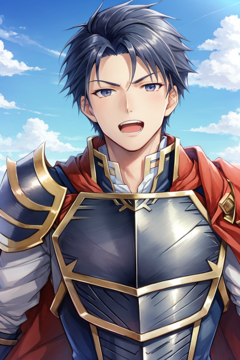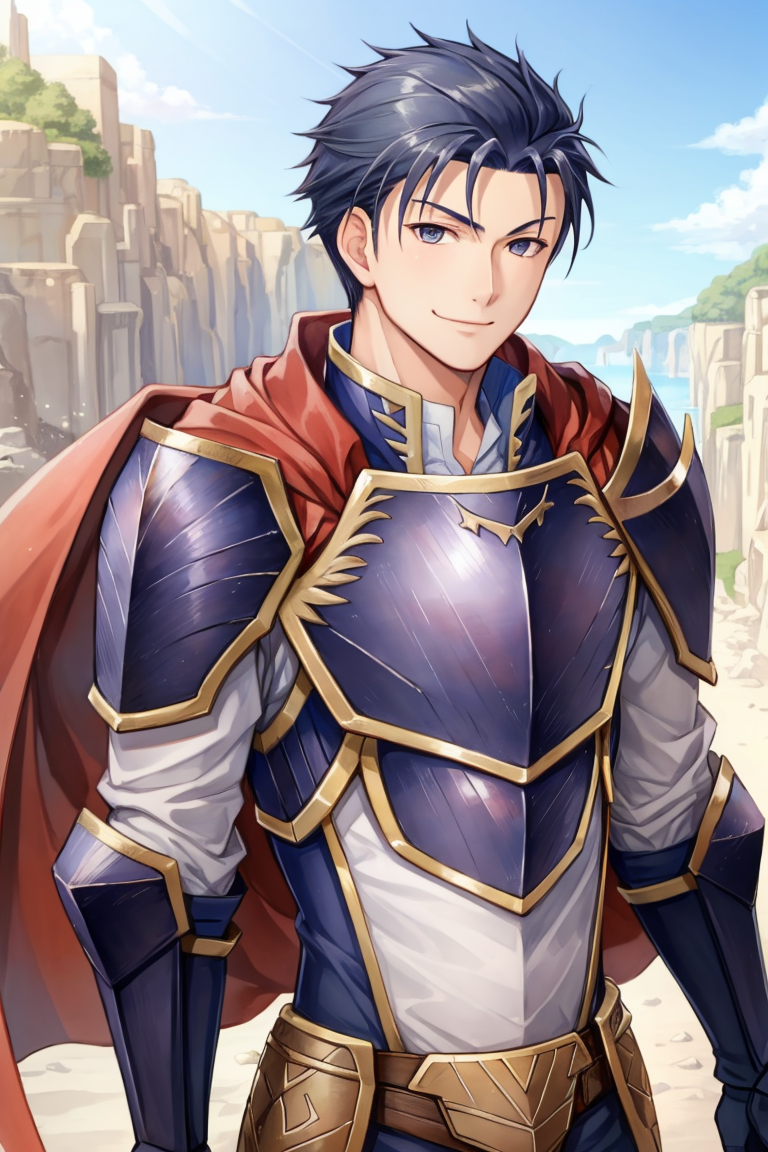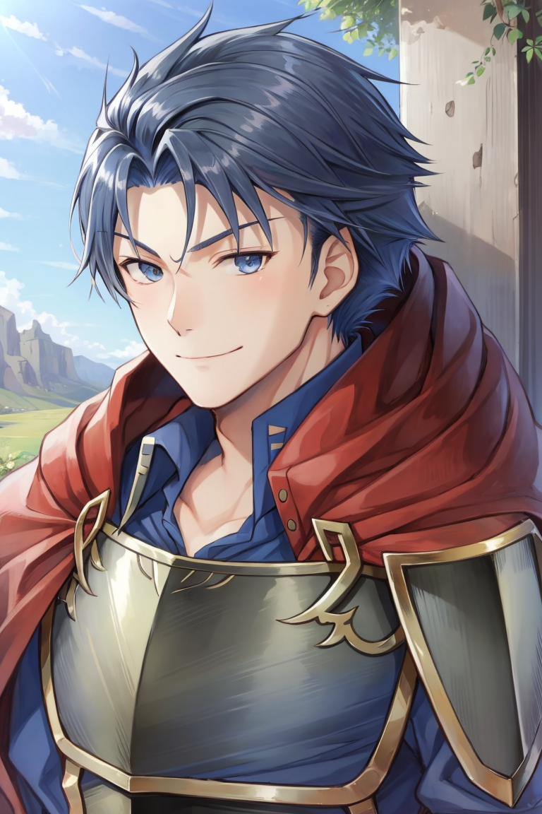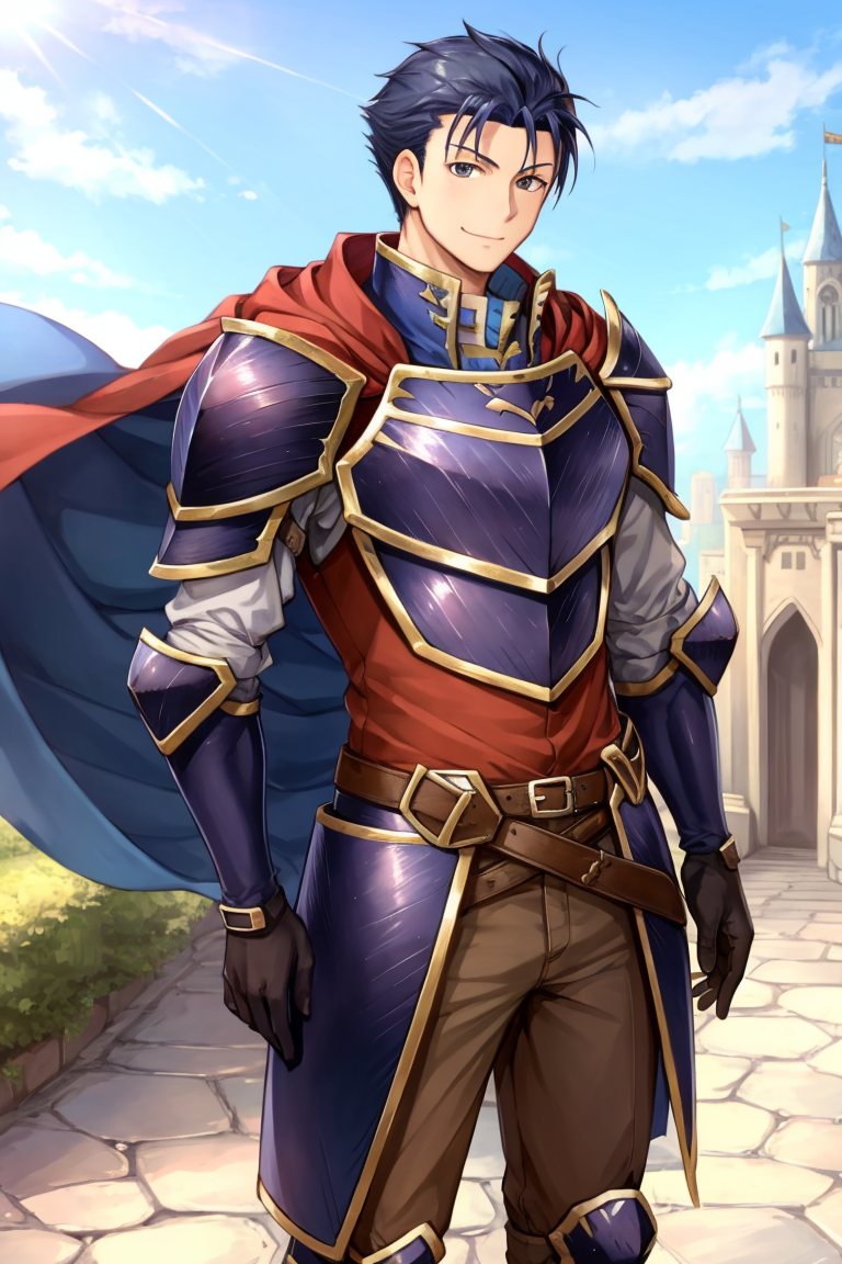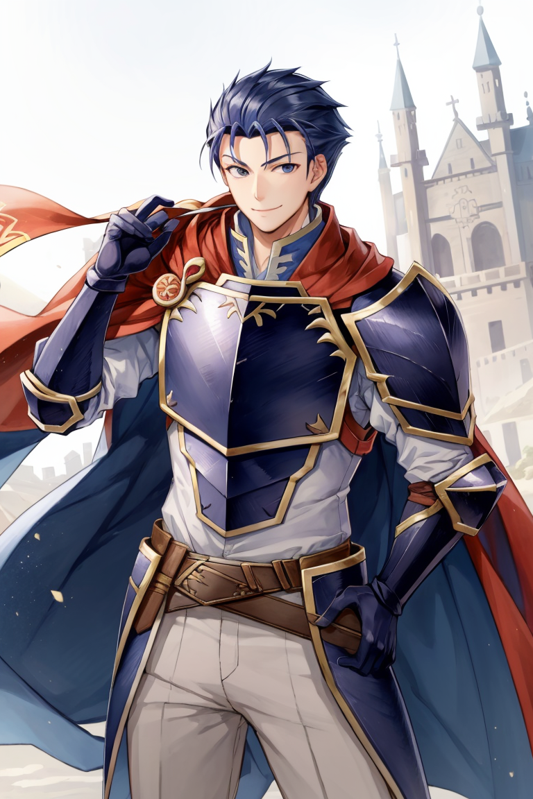 Usually prompting "red cape", "armor" together with the trigger word "hector fe" is helpful enough to get his normal look, but sometimes it is prone to making a combination with his alt(s) from Heroes.